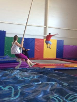 Количество и размер спортивных батутов очень порадовало. Наличие тренера и воды-тоже. Администратор-приятная женщина. Выбирайте для посещения время, когда нет занятий у групп, так как спортивные батуты будут всё время заняты. Не понравилось то, что комната для переодевания маленькая, без шкафчиков, при переодевании люди ходят из помещения туда-сюда, дети забегают к мамам, не закрывают за собой дверь, как взрослые, так и дети, а дверь из этой комнатки выходит на коридор, где заходят люди в помещении с улицы или ожидают своих дам кавалеры. Было бы лучше, если бы имелась хоть какая-то загородка от двери. Так же не понравилось отсутствие света в туалете и не закрывающиеся двери в туалет. Возможно, к этому времени всё уже исправлено, так как я там была пару месяцев назад.
