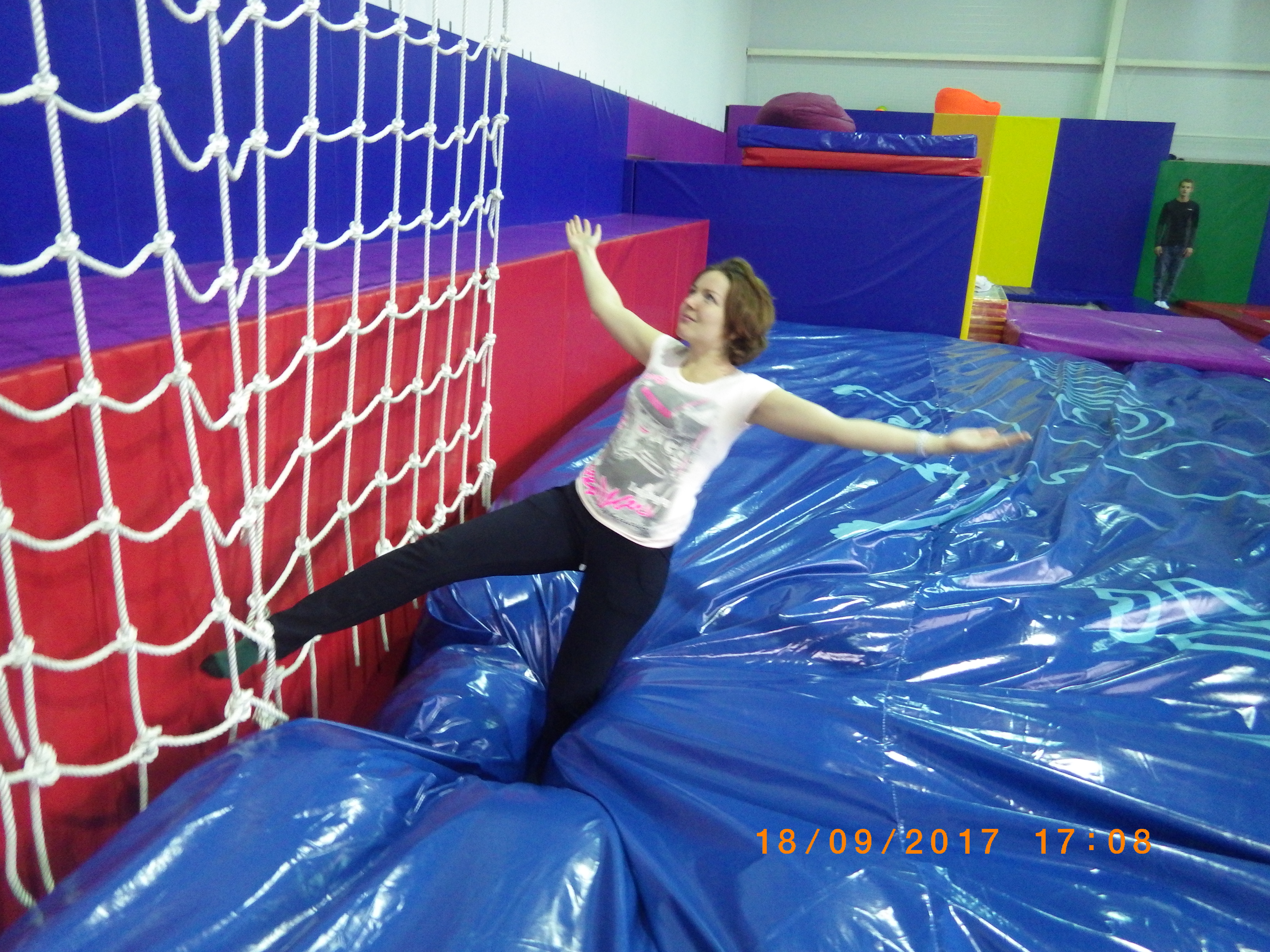 1. Мы купились на описание акции: 30 батутов и т.д. Почти все батуты маленькие, детские квадратики. Сетки чёрные и скользкие - у нас на даче батут более прыгучий, чем эти. Фото в акции с чужого зала. Если для детишек, то норм, но если вы хотите чего-то больше, то Вам лучше выбрать другой зал.
