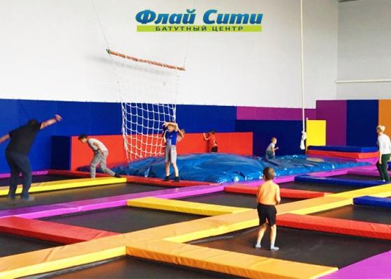 30 батутов, воздушная подушка, веревочная сетка в батутной арене "Флай Сити" всего от 4 руб.