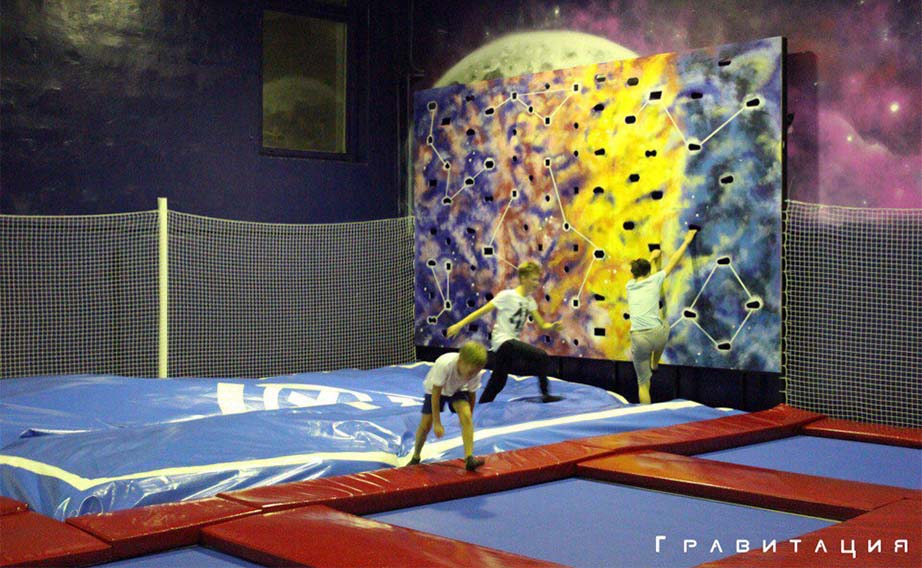 - Батутная арена "Гравитация" это новый формат спортивных развлечений в Минске. 16 любительских и спортивных батутов, батутная дорожка, воздушная подушка, скалодром на 4 трассы, профессиональный батут 25 м2, подиум высотой 1,5 метра, раздевалки, душ, быстрый wi-fi, детский уголок и комната праздников, отличная транспортная доступность и внимательный персонал. Всё для хорошего настроения и активного отдыха семьёй и с друзьями. Занятия проводят профессиональные тренеры мастера спорта по акробатике и мастера паркура. Мы работаем без выходных с 10:00 до 22:00
