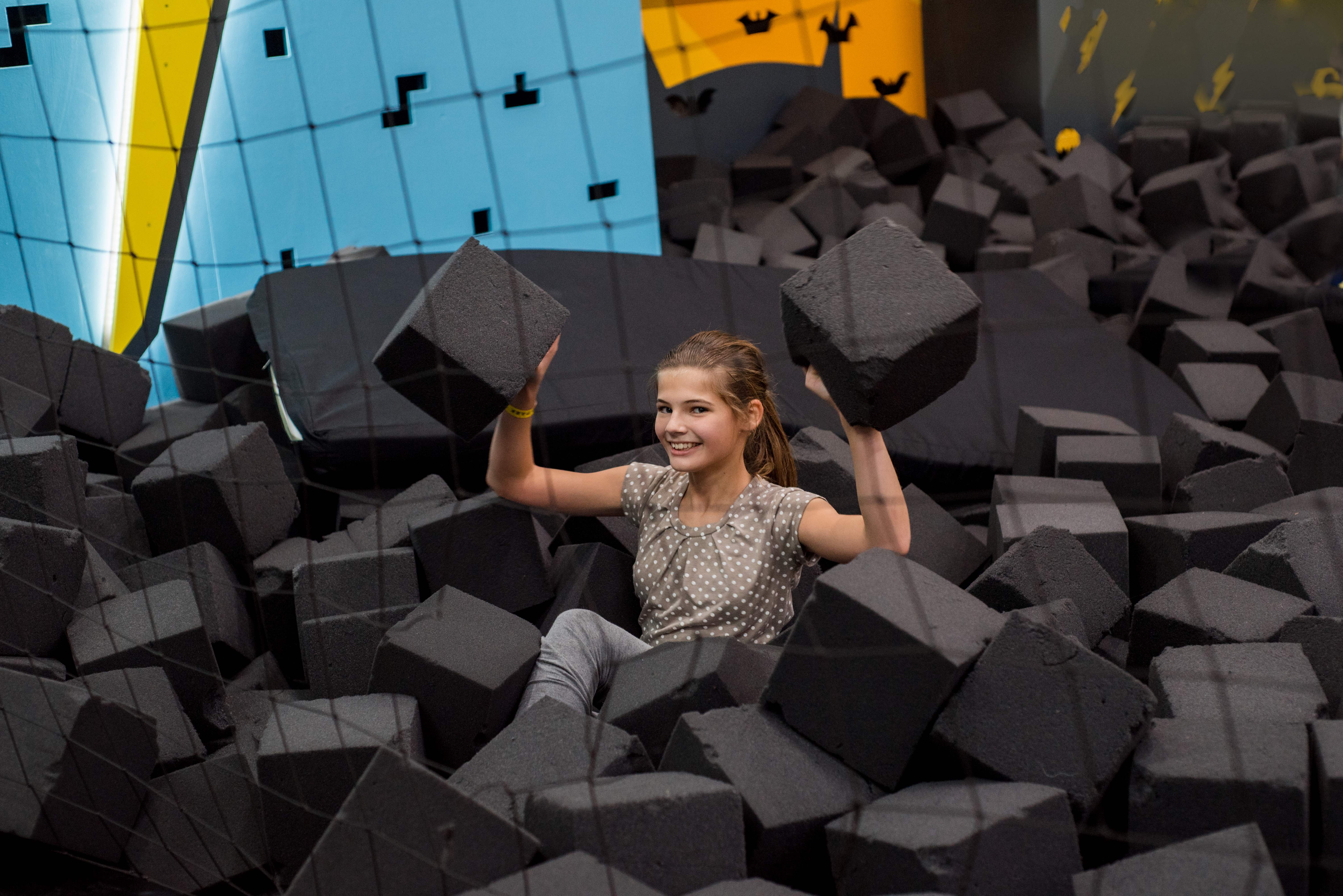 21 батут, баскетбольная зона, мягкая яма, стена для скалолазания, яма с шариками и большой детский лабиринт. Положительные эмоции гарантированы для всех!
