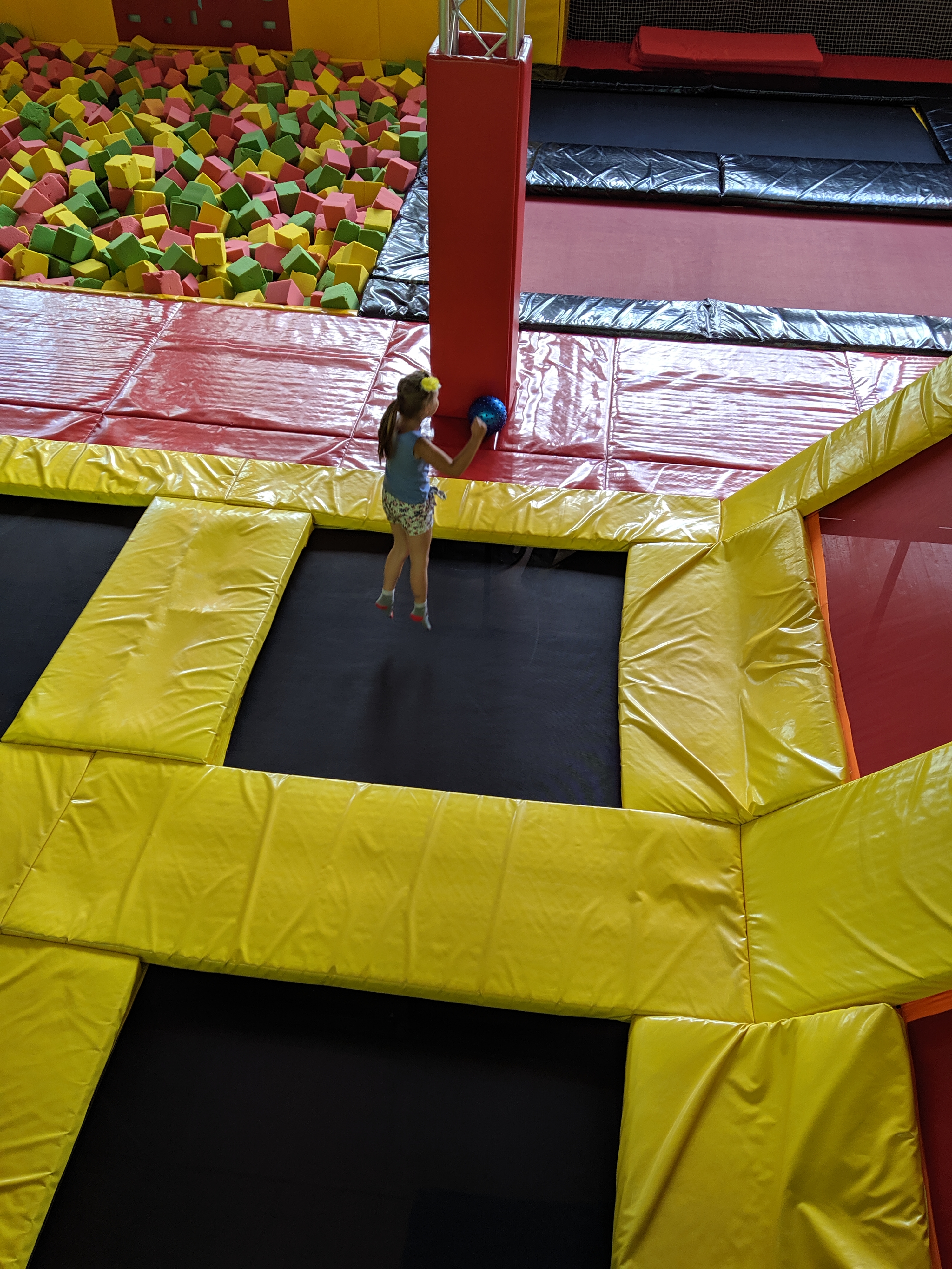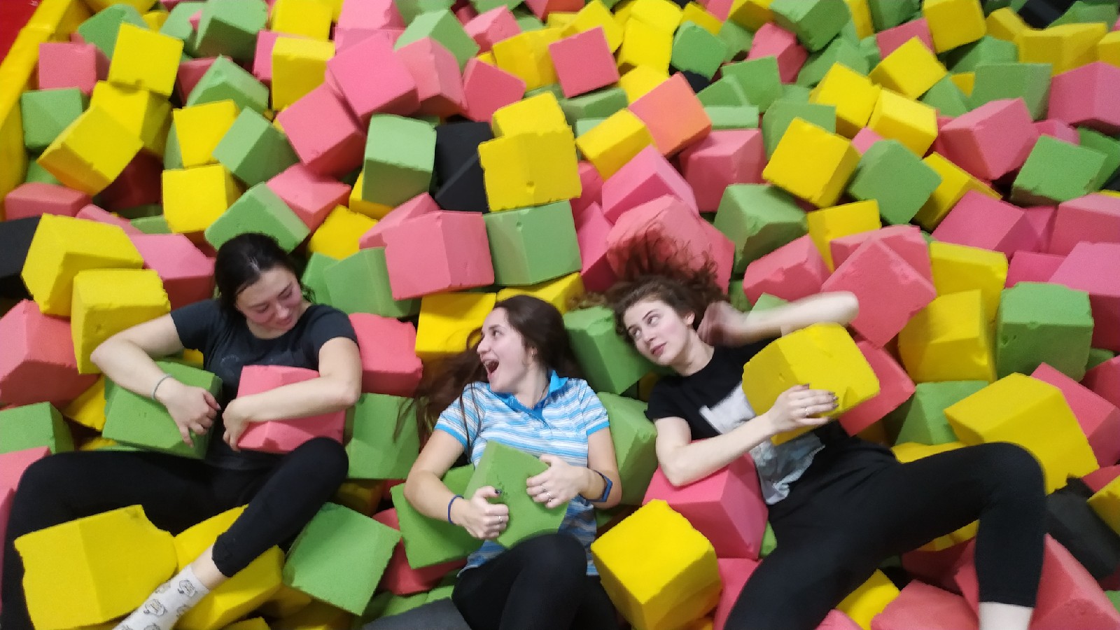 - 4 балкона для запрыгивания разного уровня - две большие поролоновые ямы