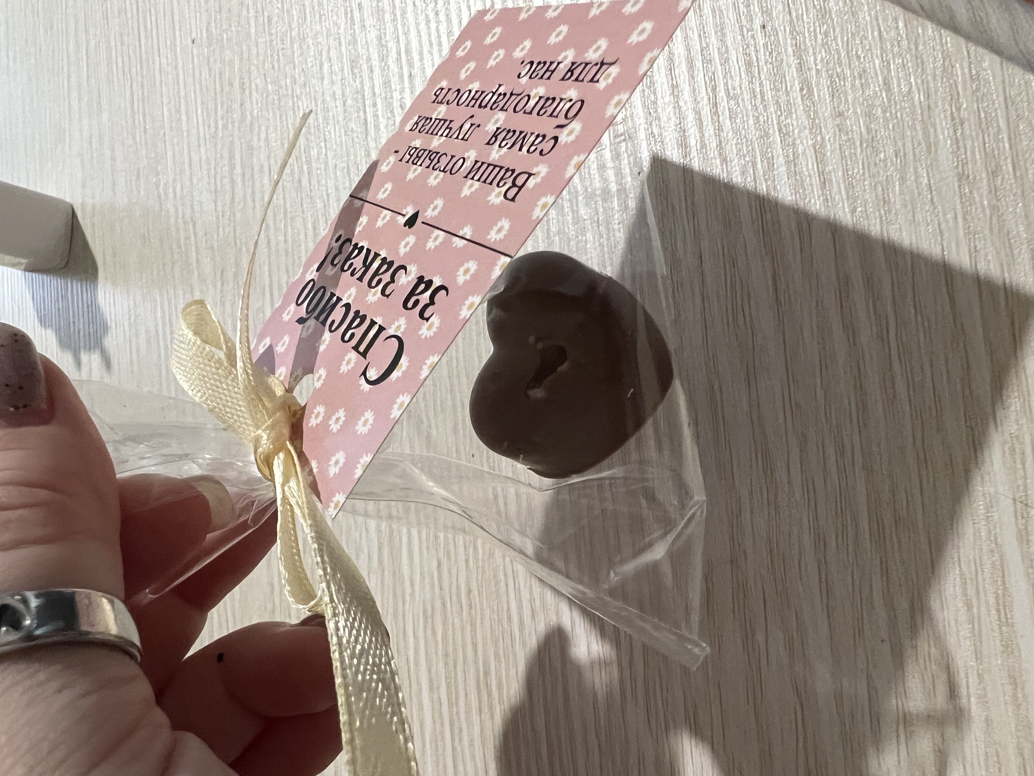 - В комплект входит: ложечка, ленточка, свеча и открытка