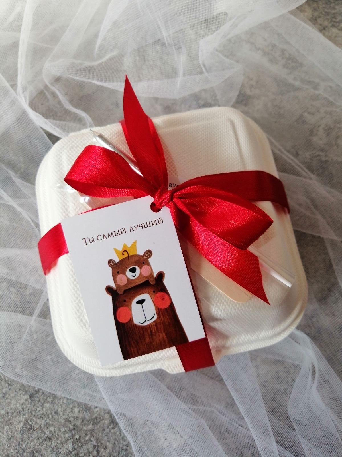 - Бенто-торт упакован в эко-коробочку