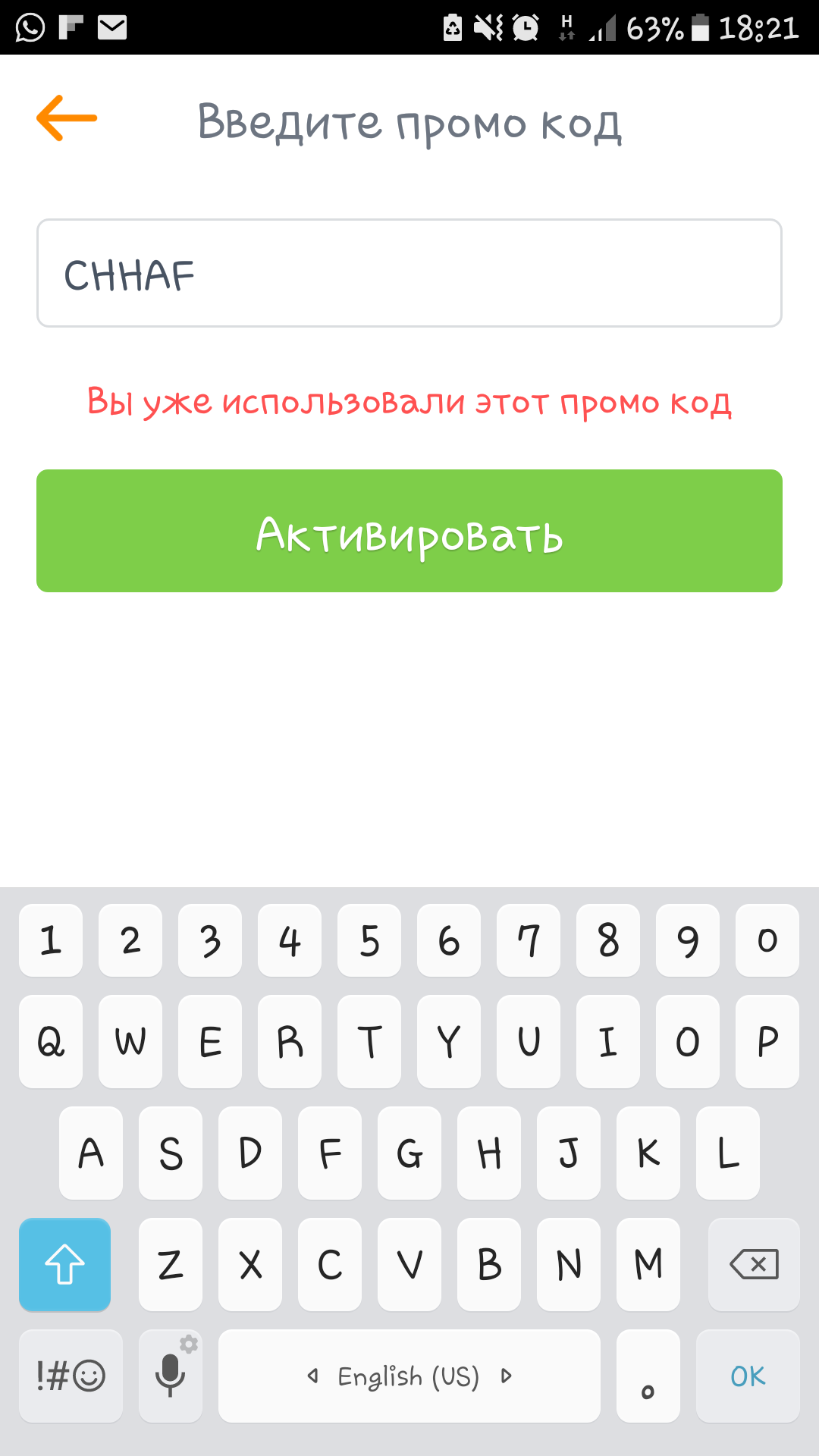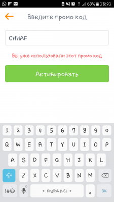 Добрый день! Позвонила по велком, получила код, ввела - в окне выдает "вы уже использовали этот код"! Я только вчера установила приложение и еще не пользовалась. Прошу разобраться или вернуть сумму за промо-код
