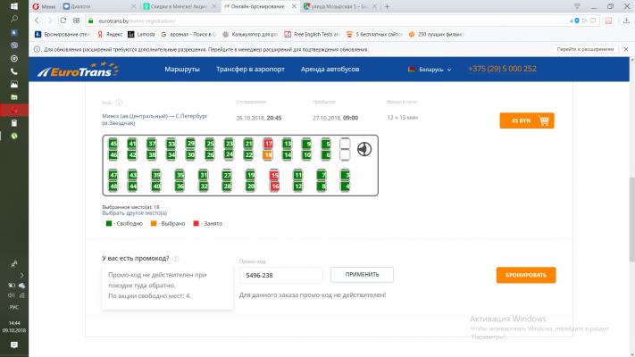 - Перед покупкой промокода проверьте наличие свободных акционных мест на сайте eurotrans.by (инструкция под описанием)