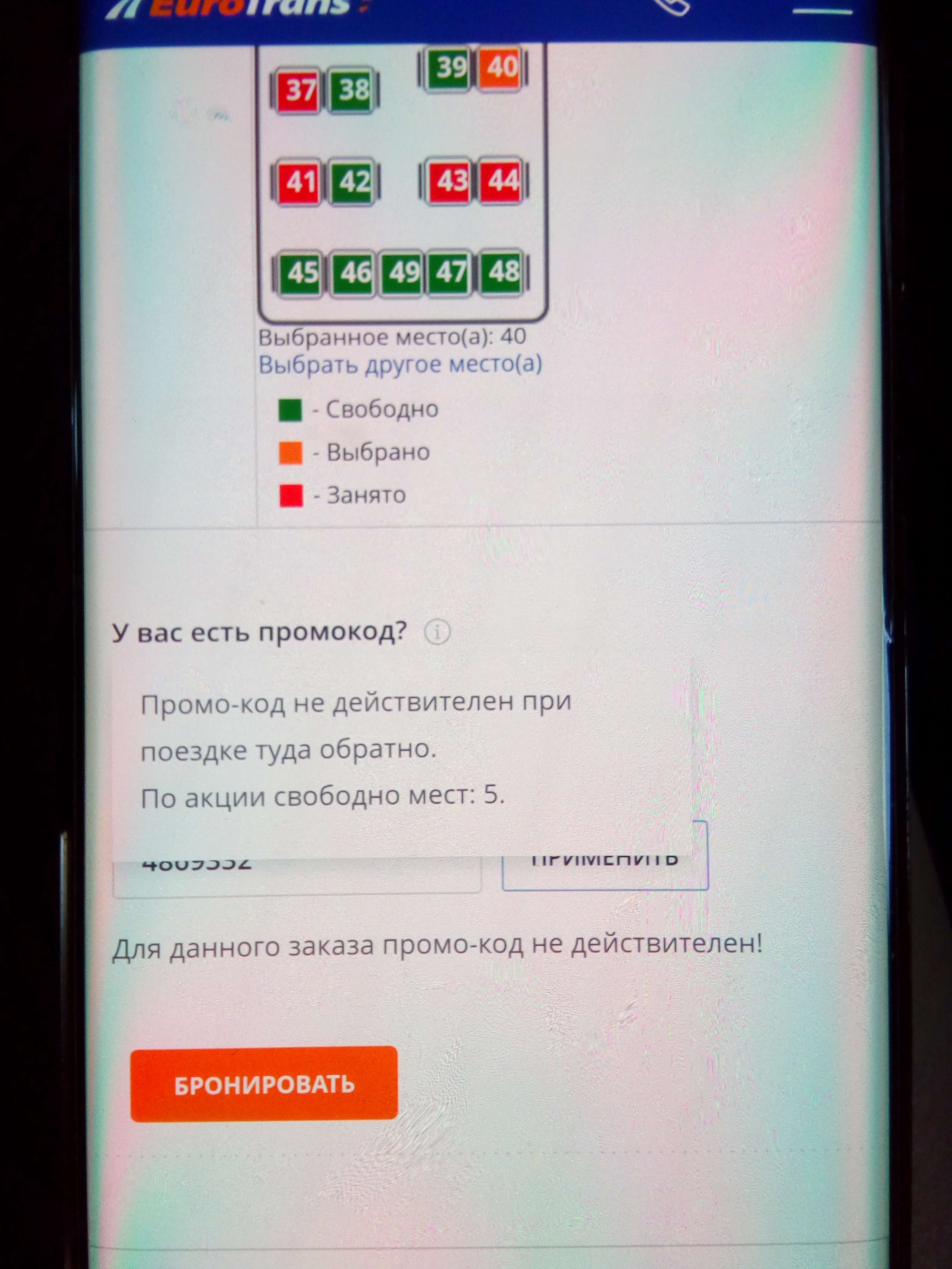 - Услуга бронирования билетов (оплата при посадке) по промокоду не предоставляется, предоставляется только покупка билетов на сайте eurotrans.by