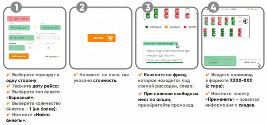 - Один промокод - один билет (в одну сторону) со скидкой.