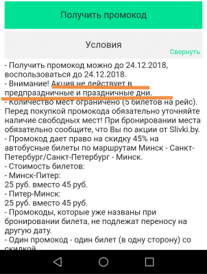 - Промокод дает право на скидку 33% на автобусные билеты по маршрутам Минск - Санкт-Петербург и Санкт-Петербург - Минск