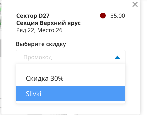 - Внимание! Перед приобретением промокода уточните наличие билетов здесь. Далее приобретите промокод и сразу же купите билет со скидкой на сайте