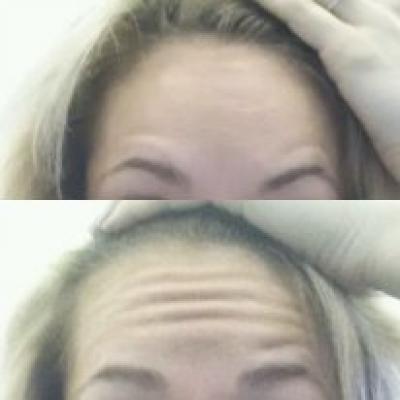 "коррекция мимических морщин межбровья, лба и окологлазничной области."