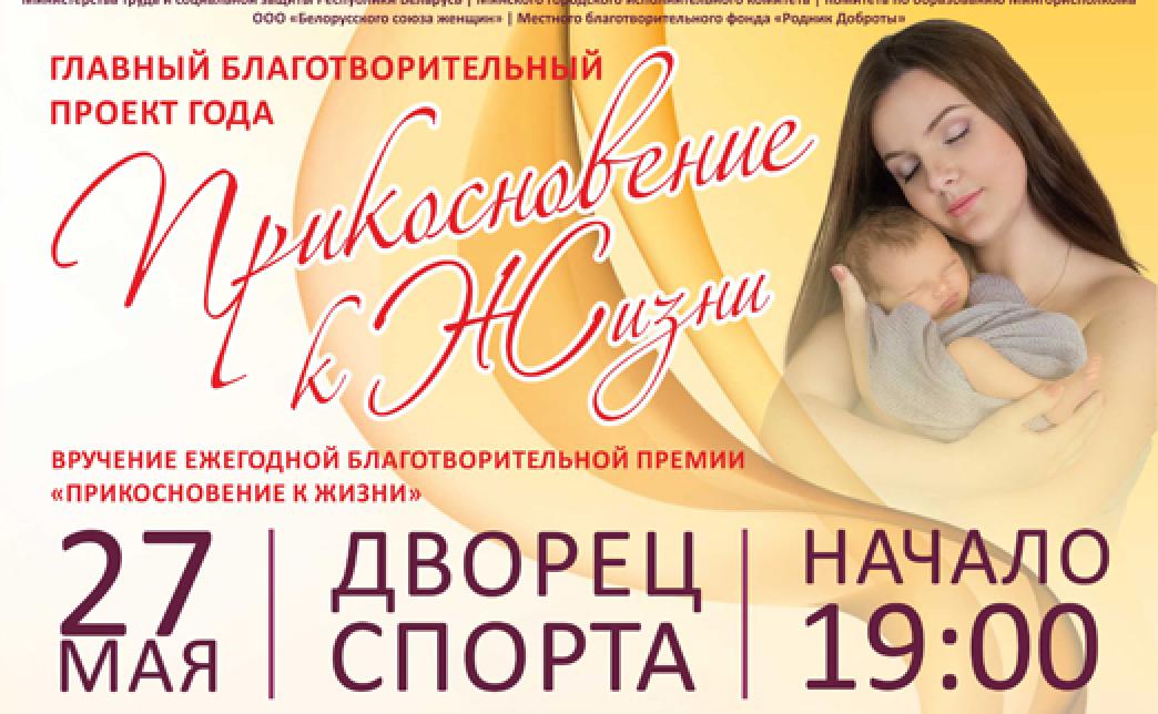 Бессменная ведущая наших благотворительных концертов - Заслуженная артистка Республики Беларусь Алёна Спиридович. На данном мероприятии будет назван победитель в номинации «Благотворитель года» (за вклад в дело благотворительности), учрежденной фондом «Прикосновение к жизни».