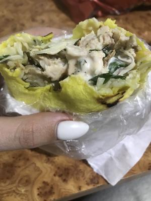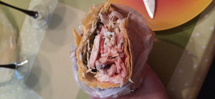 Состав: филе куриное, лаваш классический, соус чесночный, кетчуп, капуста, огурец маринованный, лук маринованный.
