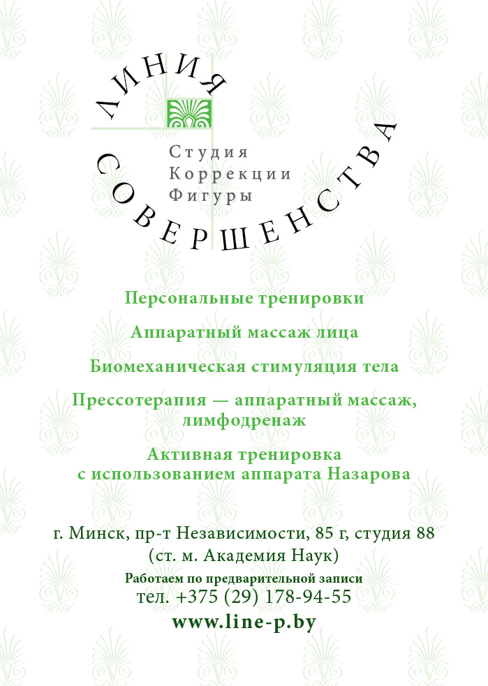 Рекомендуем регулярно 2, 3 раза в неделю заниматься в студии ЛИНИЯ СОВЕРШЕНСТВА.