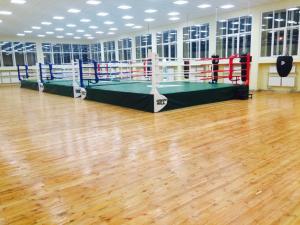 - Тренировки проходят в новом зале площадью 400 м2, оснащенным тремя рингами олимпийского уровня, новейшим спортивным оборудованием и боксерскими снарядами, новыми раздевалками и душевыми.
