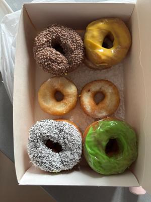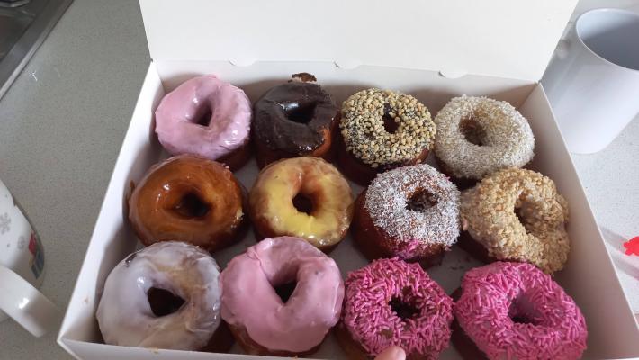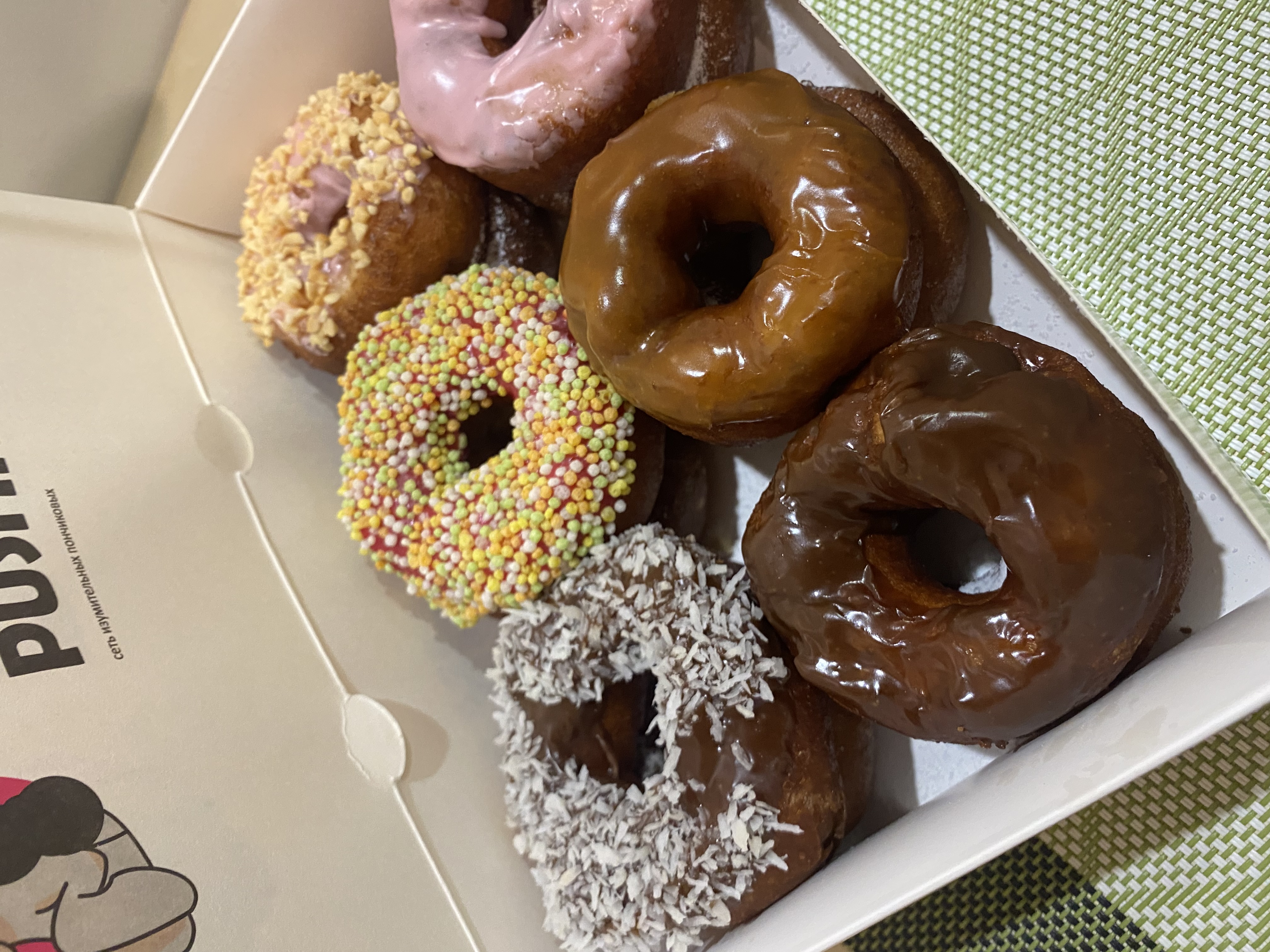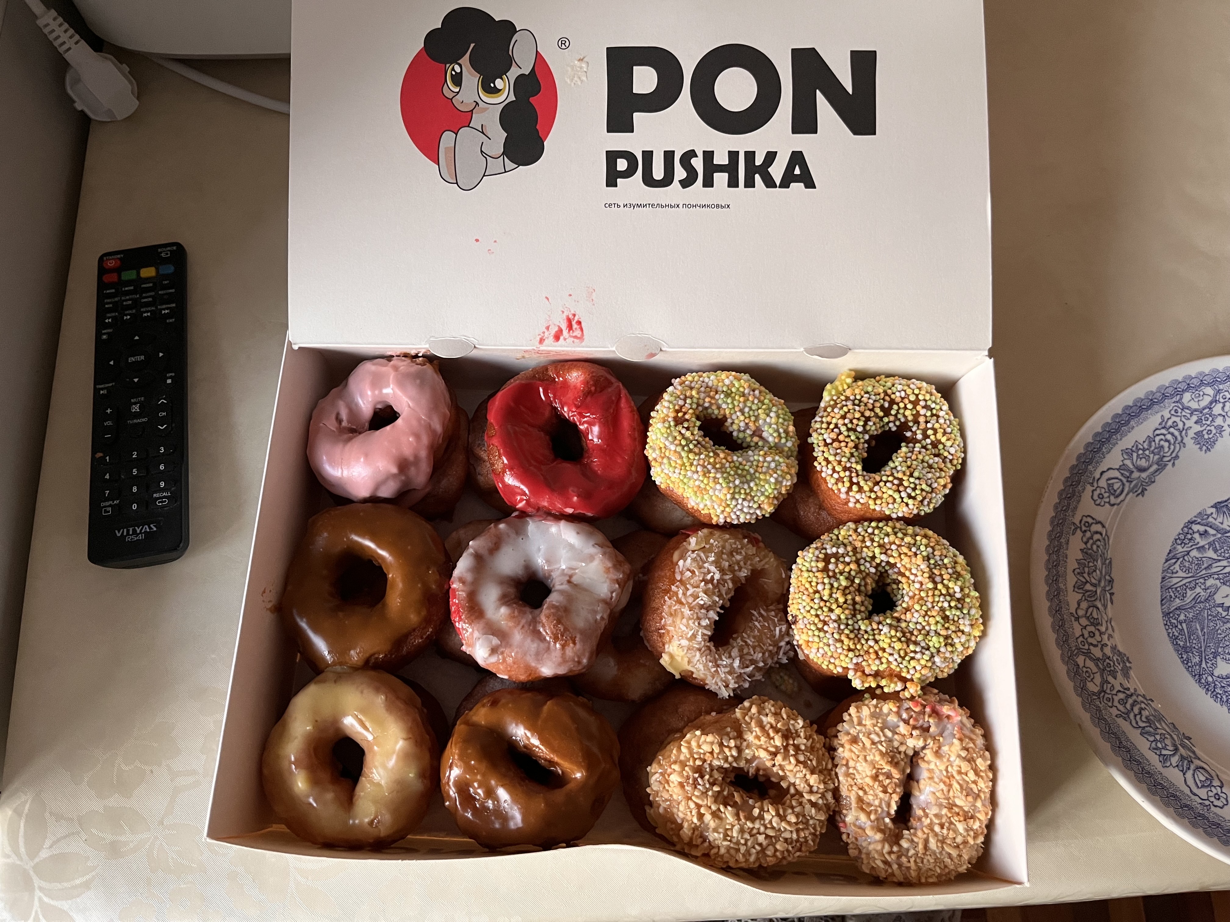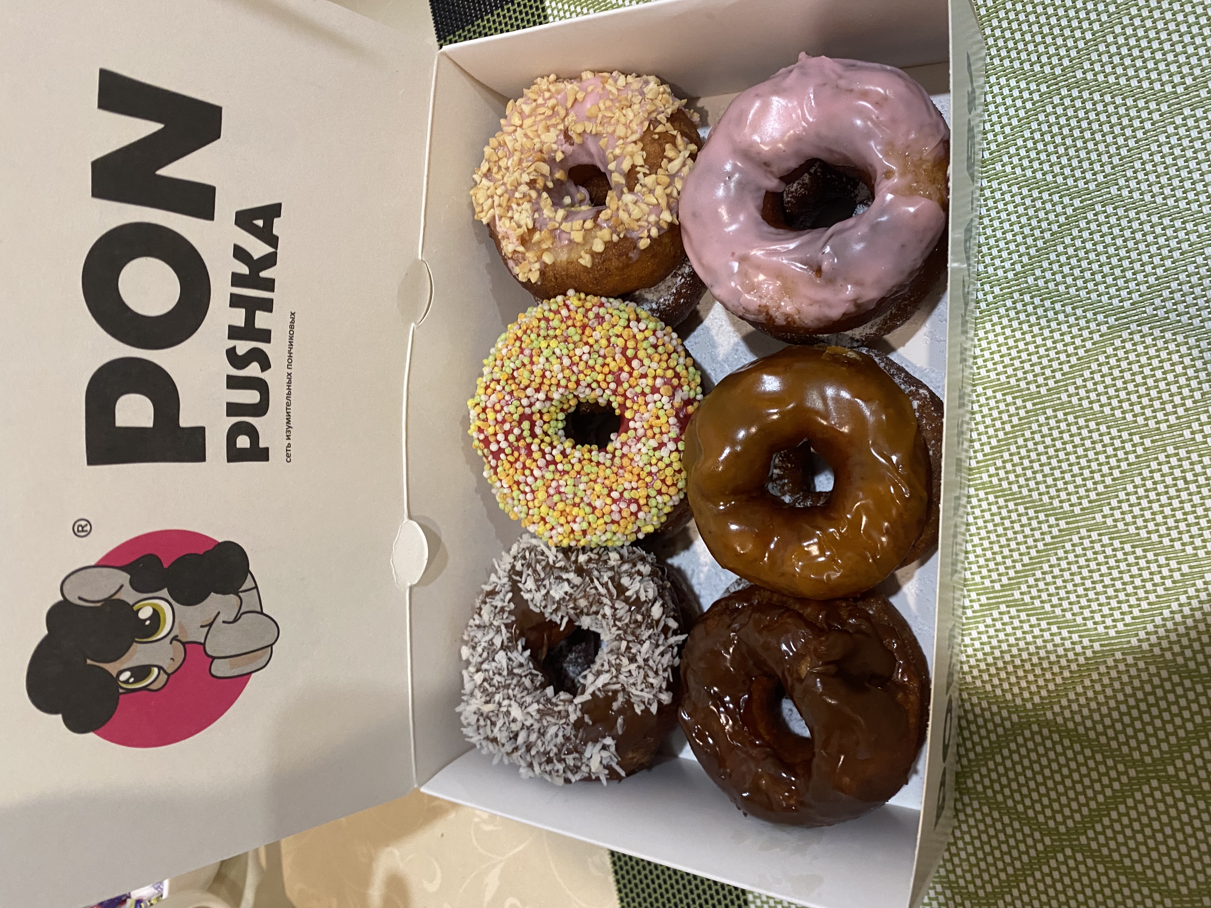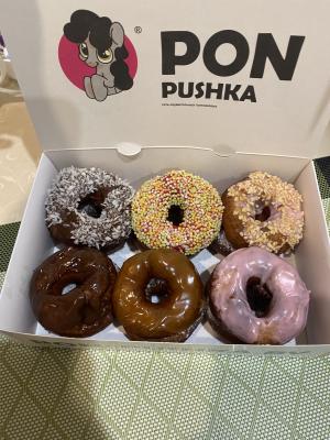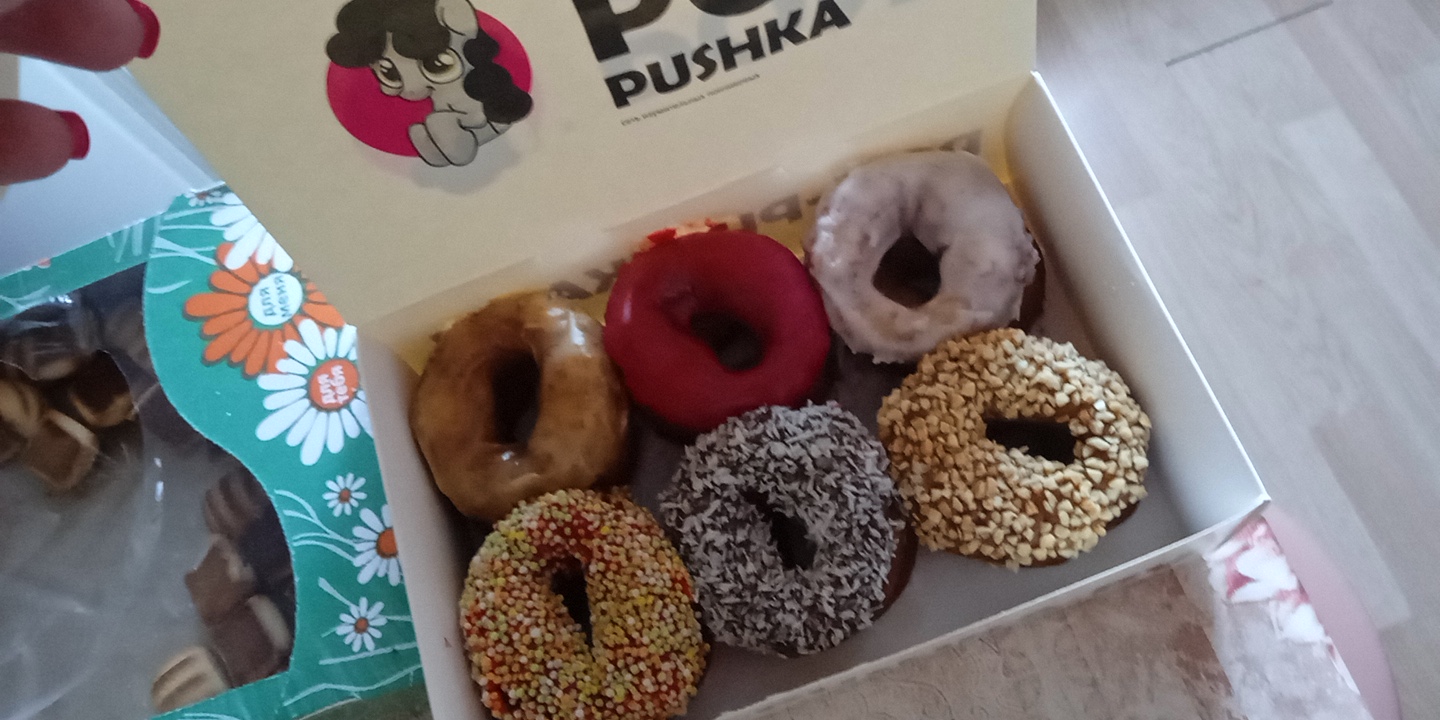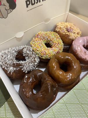 *Вкусы глазури и посыпки на пончиках в боксе выбираются случайным образом исходя из наличия в момент формирования заказа.