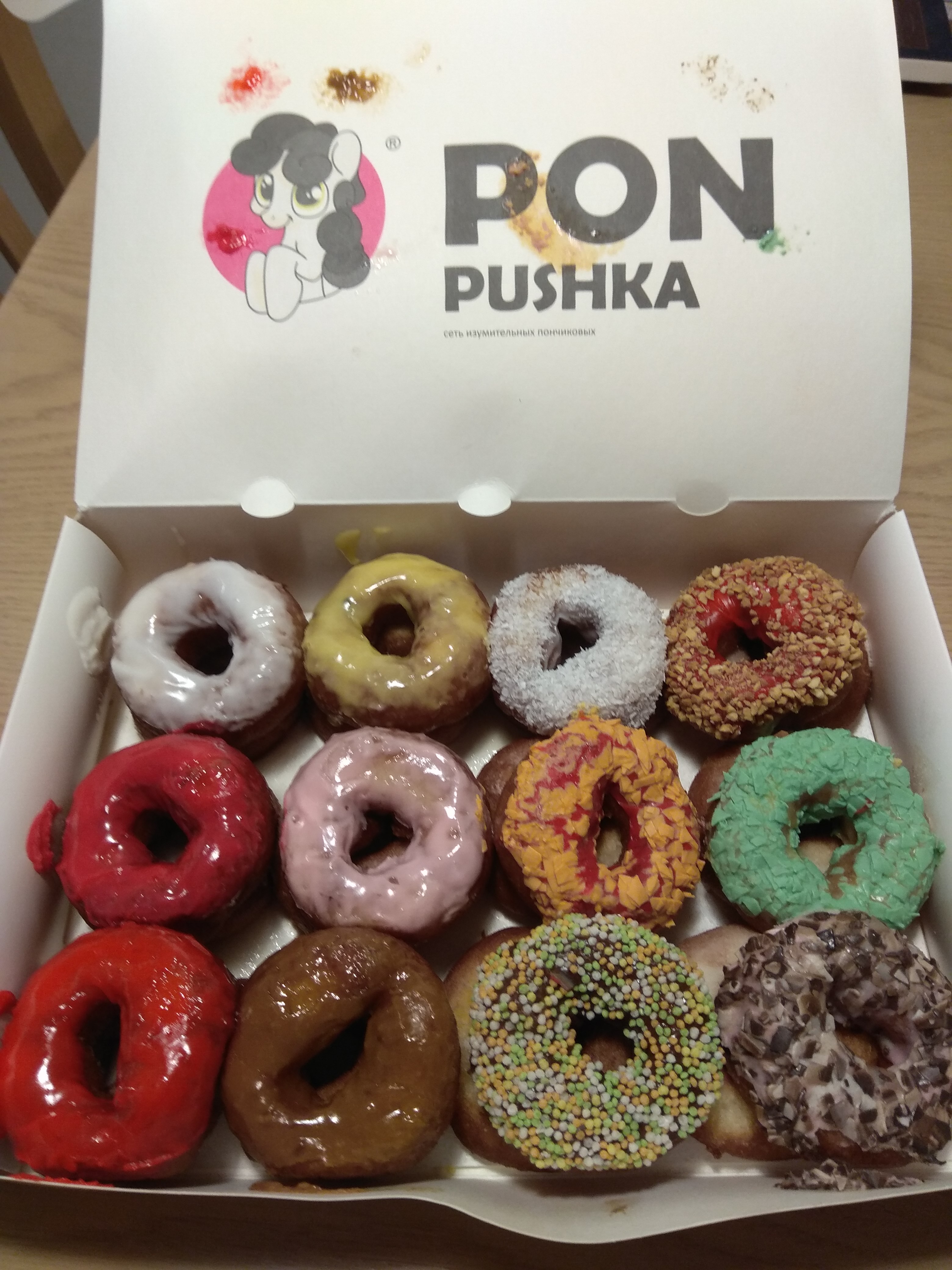 Вкусные пончики! Лучше их съесть сразу, так вкуснее) Без "сливок" еще не заказывала, но что-то мне подсказывает, что там предложения поинтереснее будут! Дочка была в восторге, так как обожает все, что связано с пони! Спасибо за возможность попробовать что-то новое! Успеха и процветания в Вашем деле!
