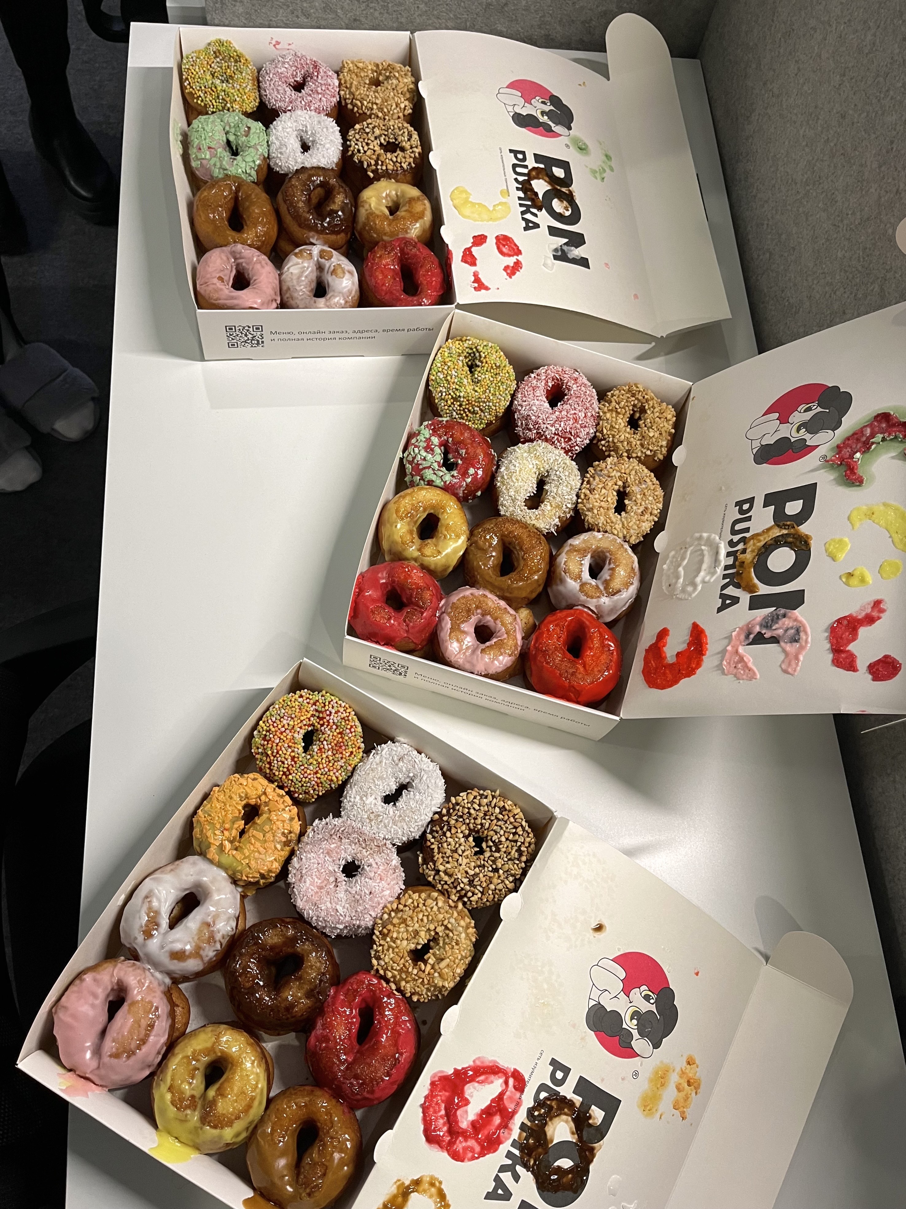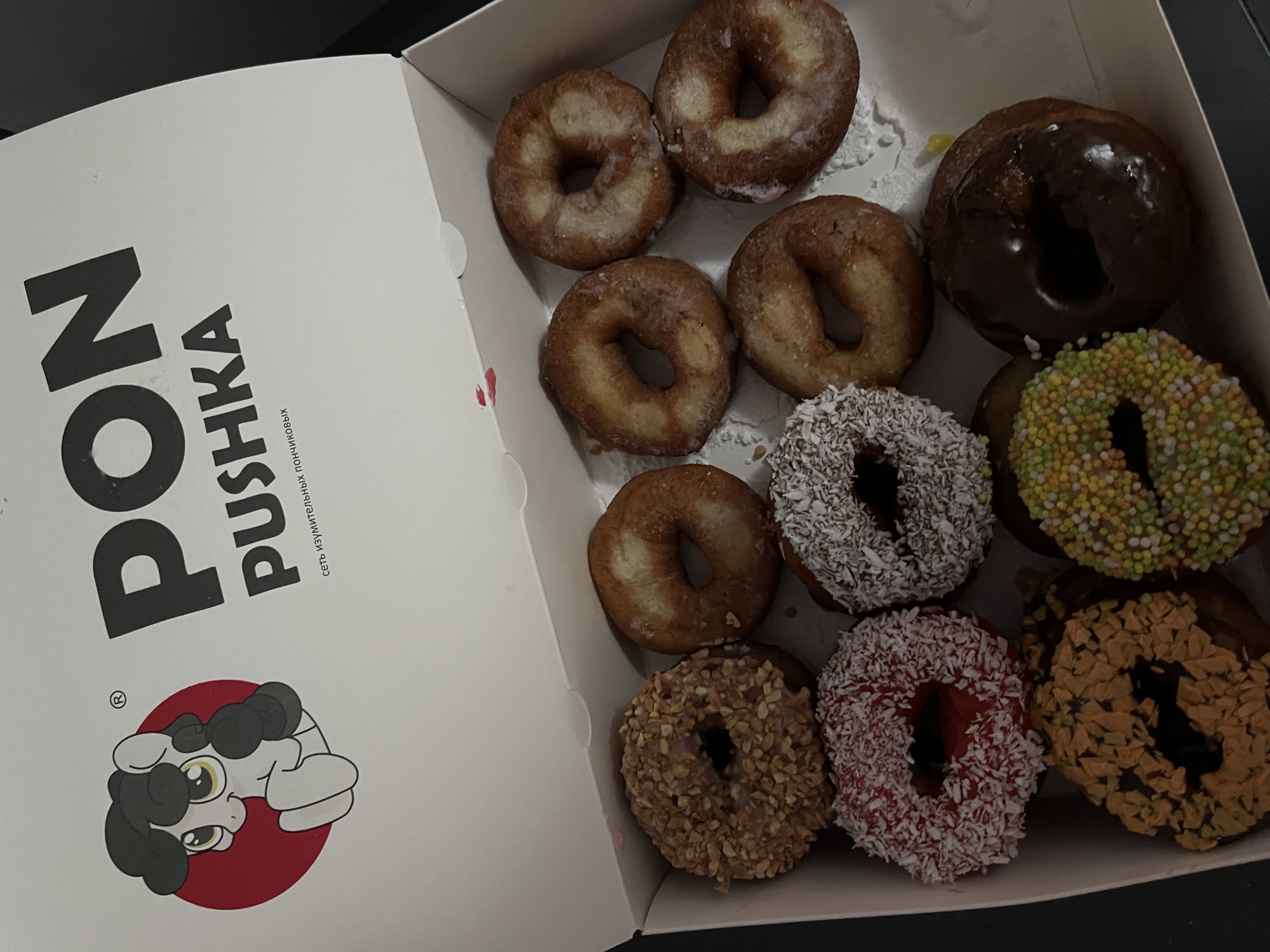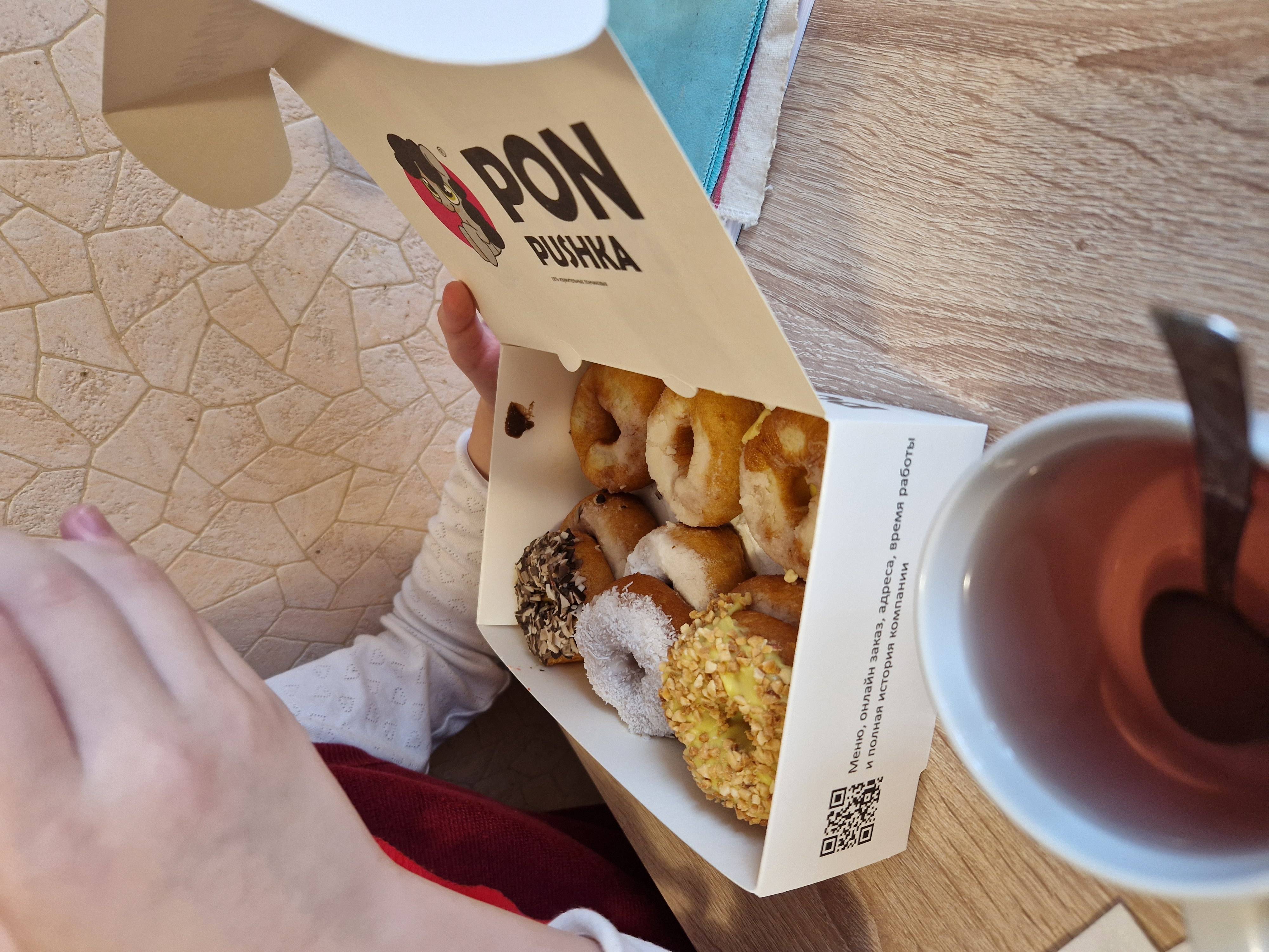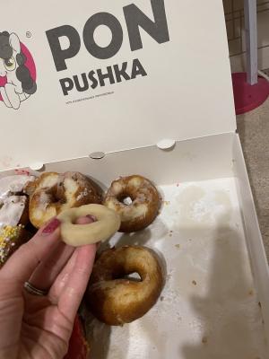 Всё понравилось: пончики вкусные, курьер вовремя. Спасибо Pon-pushka и спасибо Slivki!