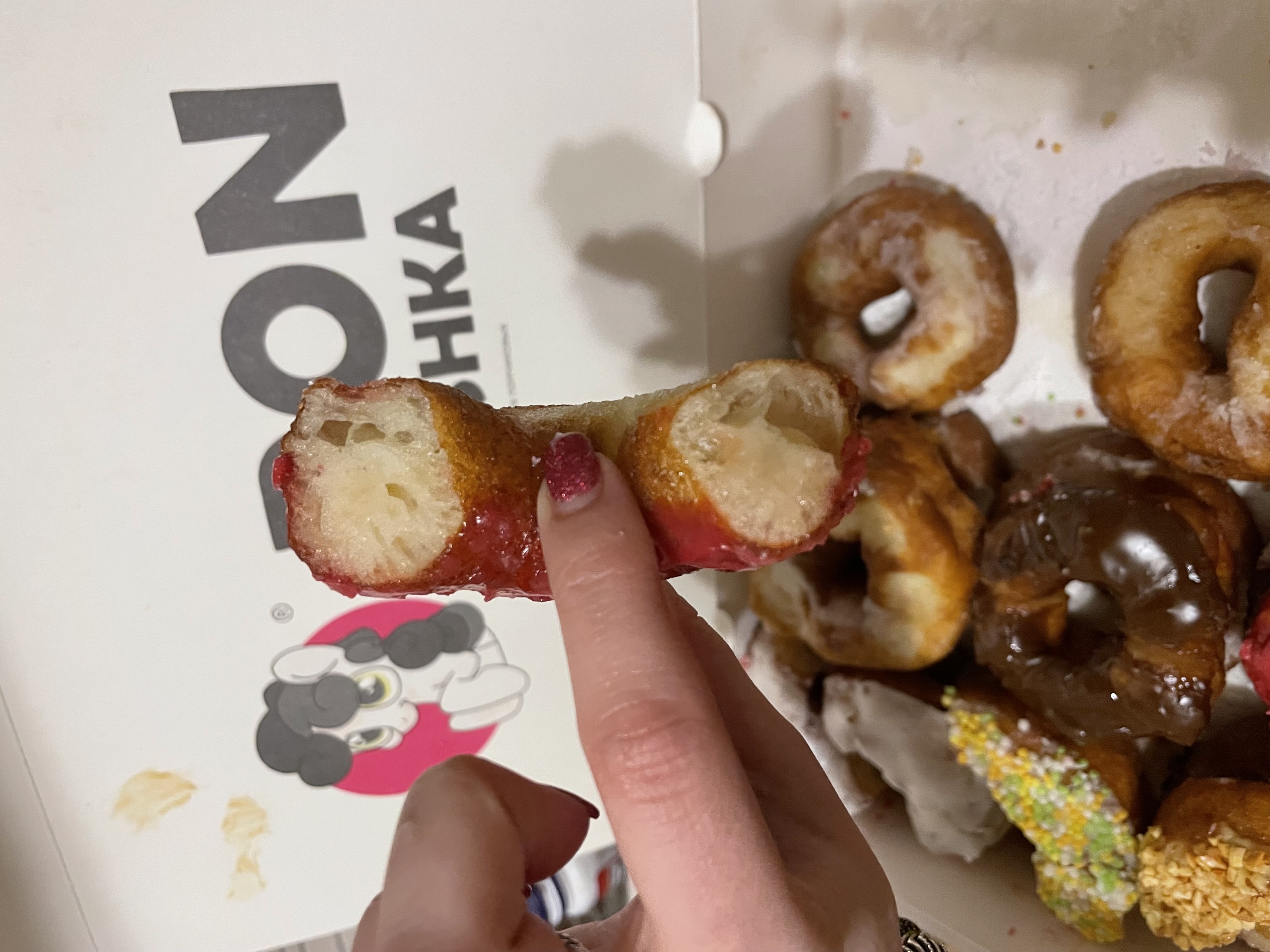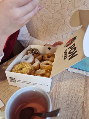 Вкусные и свежие пончики. Очень добрый и приветливый курьер доставлял. 27.02.2024.