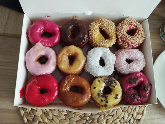 *Вкусы глазури и посыпки на пончиках в боксе выбираются случайным образом исходя из наличия в момент формирования заказа.