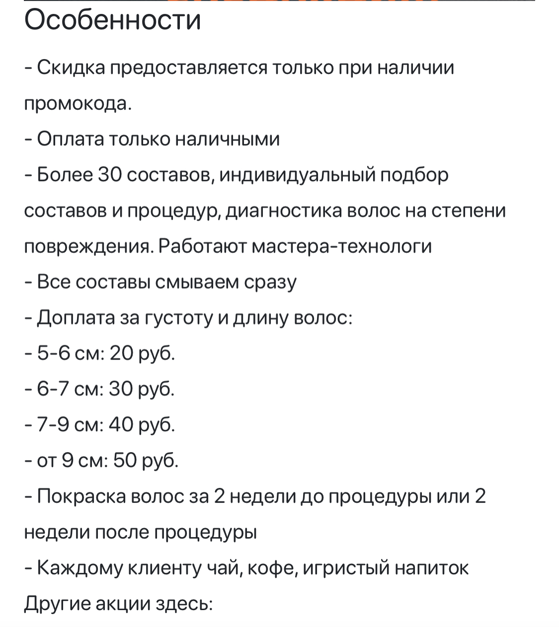 - Доплата за густоту и длину волос: