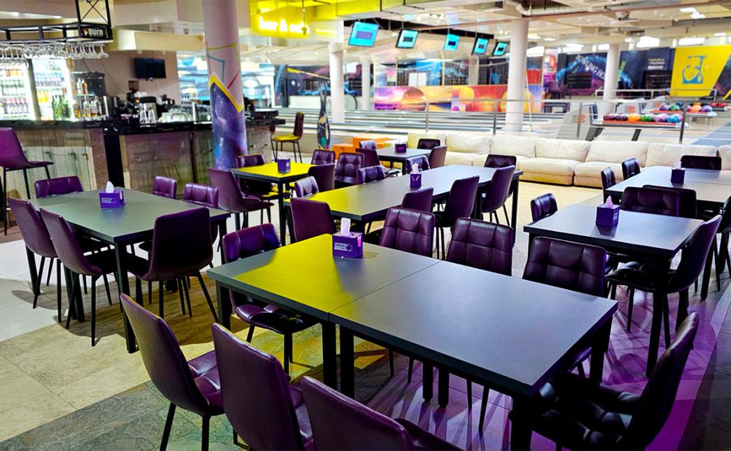 Для проголодавшихся игроков предусмотрено разнообразное меню кафе. Широкий выбор блюд и напитков в баре позволит не только наслаждаться игрой в боулинг, но и устроить небольшой праздничный фуршет для вашей семьи или гостей.