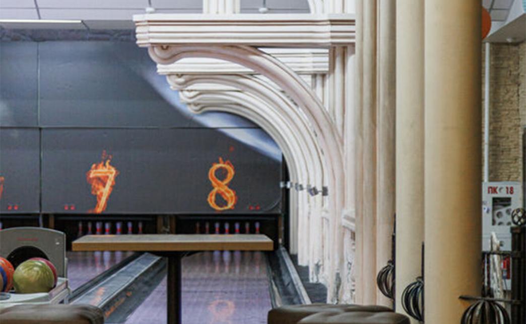 Элементы готического стиля делают помещение необычайно загадочным и выразительным, а приглушенное освещение помогает расслабиться и почувствовать себя гостем средневекового замка. Готические демоны, сказочные драконы и мифические горгульи охраняют покой посетителей боулинг-клуба, наблюдая за игрой.