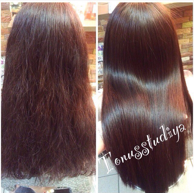 Делала 29.11 у Юлии кератин G-Hair Inoar (Бразилия). Заплатила 691000 волосы чуть ниже плеч. При проработке феном все ок, если сушить естественным путем- то есть волны и пушистость, но меньше чем было.