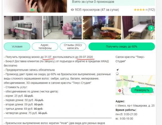 - Промокод дает право на скидку до 50% на бразильское выпрямление, различные виды сложного окрашивания волос: омбре, шатуш, балаяж, мелирование, обесцвечивание, 3D-окрашивание в салоне красоты "Тонус-студия "ReMake"