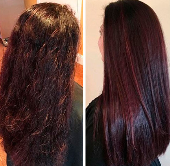 Кератин "Brazilian Nuts Felps" (Бразильский Орех) обладает хорошим эффектом выпрямления, поэтому гарантирует 100% выпрямление среднего завитка и пушистых волос.