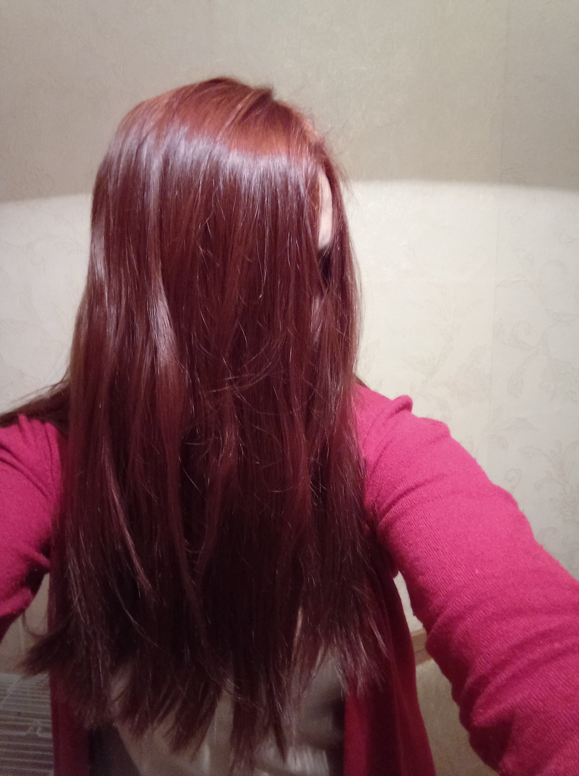 Сегодня была на окрашивании в один тон. Результат мне не понравился от слова совсем. Речь шла о медно-рыжем цвете, не темнее чем 7 тон. По факту получила цвет красный, совсем не тот, о котором шла речь. На свою голову ещё и согласилась подравнять кончики. "Кончиками" оказалось 7 см длины моих волос. Сделали филировку вместо среза обычного, которую я никогда не делаю. Почему просто не спросить как предпочитает клиент? Сколько длины готов снять? Хочет ли филировку? Хочет ли цвет волос как у русалки Ариэль? До сих пор не знаю, каким меня тоном покрасили или каких тонов там намешали, но это точно не то что я хотела. Добило то, что по приходу домой обнаружила, что мне вымазали краской свитер, естественно она полностью уже не отмоется, и я думаю мастер это видела, но предпочла промолчать.