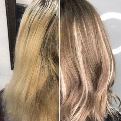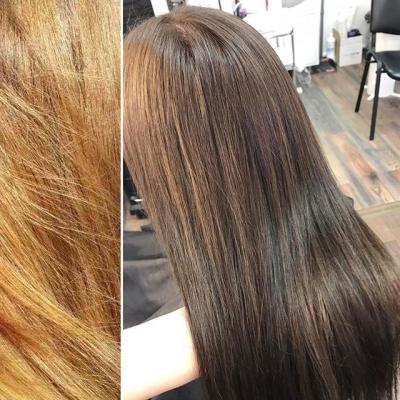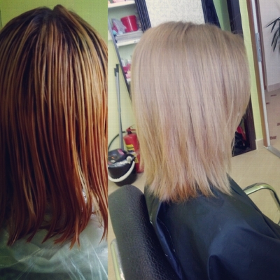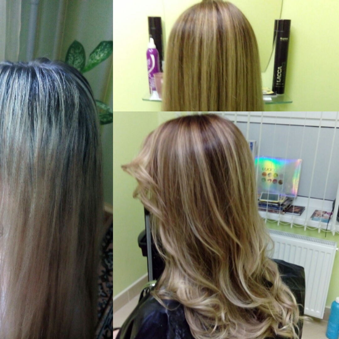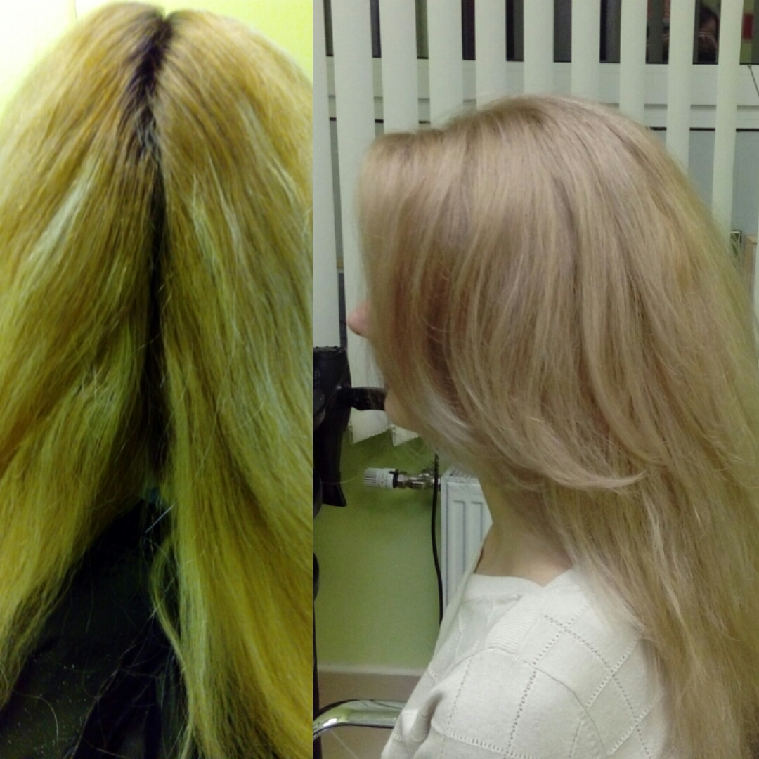 - репигментация (окрашивание мелирования или пористого блонда в натуральные тона):