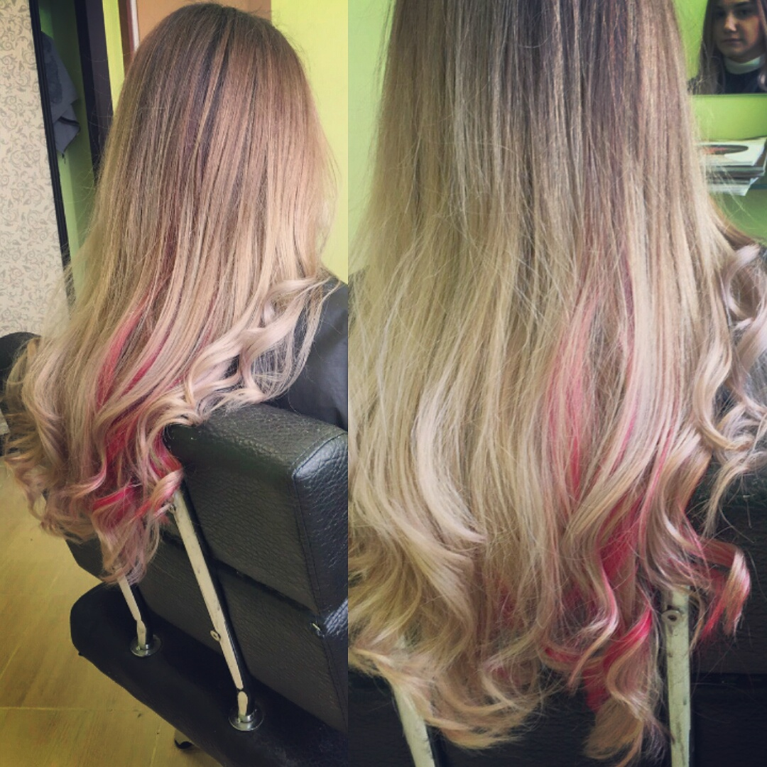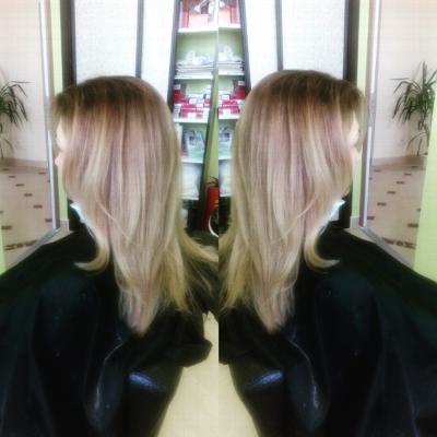 Делали балаяж на длинные волосы + стрижка челки+немного затонировали цвет = по стоимости оплатила 90 рублей.