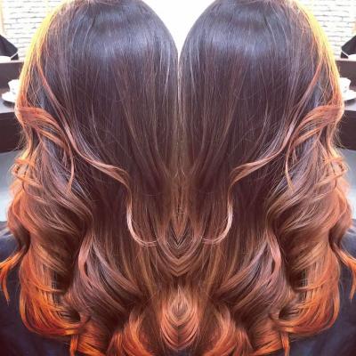 - обратный балаяж (затемнение корней + осветление длины):