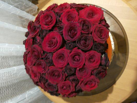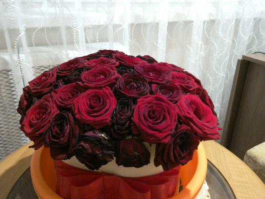 Купил 51 розу жене, доставка была произведена вовремя, изначально букет очень понравился, но розы частично свяли уже на следующий день, а через пять дней полностью букет испортился, см.фото ниже