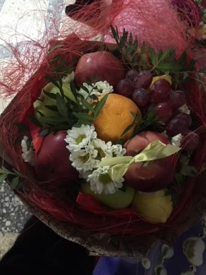 Заказывала фруктовый букет на прошлой неделе. Сделали все быстро и красиво, забрала из магазина. Для удобства букет положили в коробочку.Спасибо.Буду заказывать ещё!!