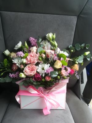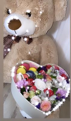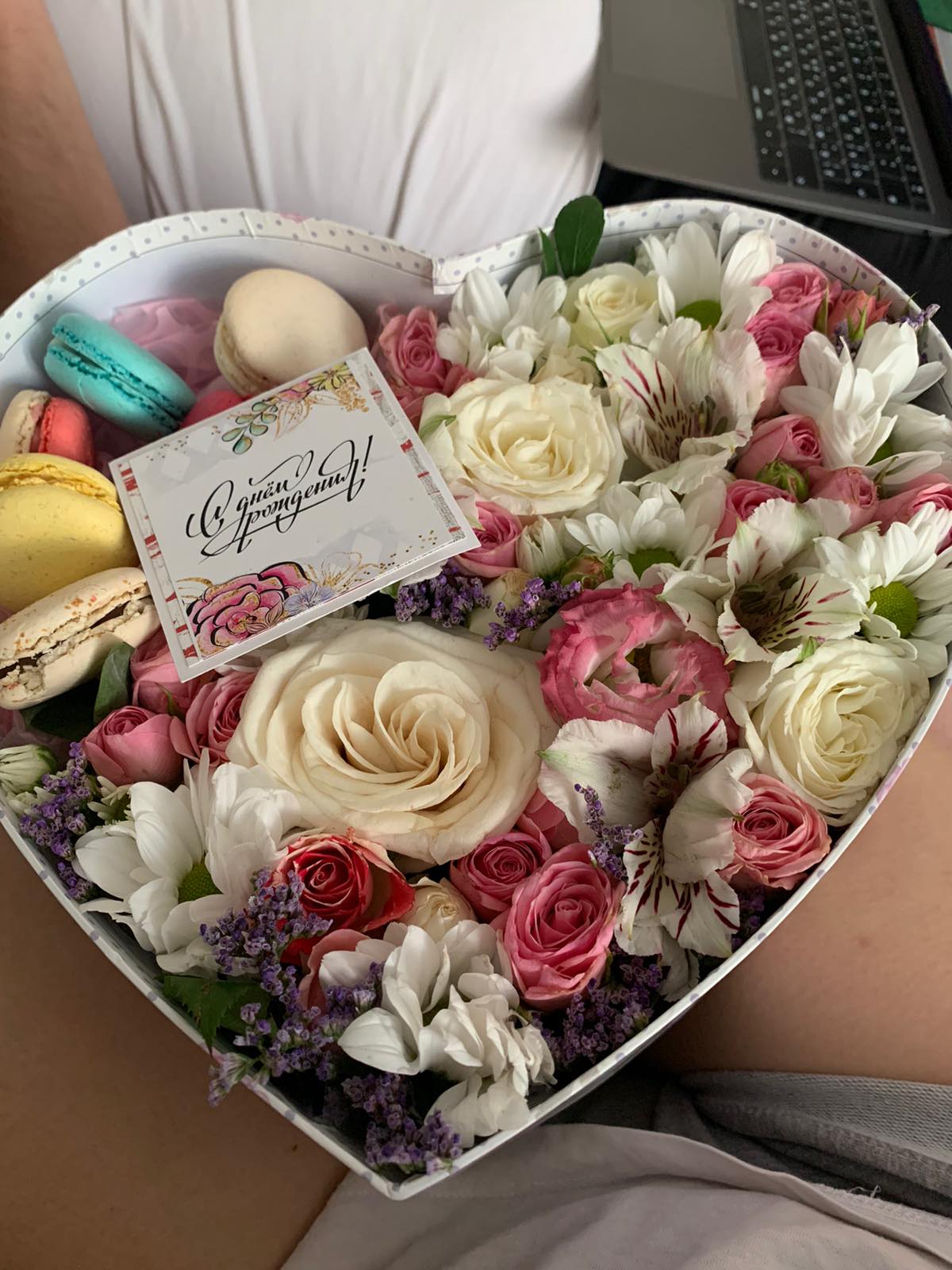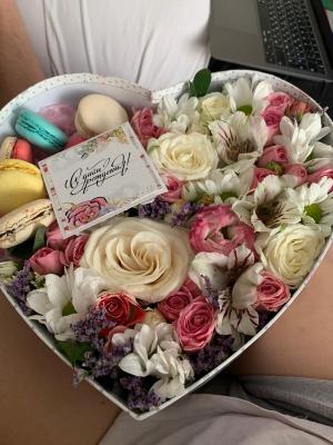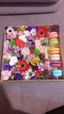 Цветочные коробочки с макарунами (стоимость зависит от размера коробки):