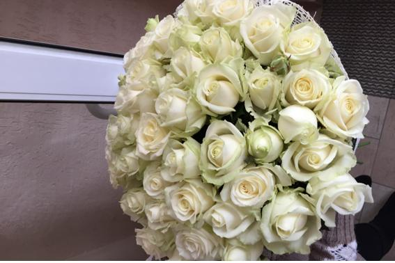 Заказывали букет - 51 роза по 60-70 см. Бутоны оказались мелковатыми, а потом еще и увидели, что не все цветы были свежими. Прошлый раз с букетом нам повезло больше...