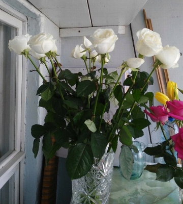 Спасибо за качественные, живучие и красивые цветы! Покупал букет из 15 роз, 20 апреля. Фото их состояния на 29 апреля! Обязательно зайду еще ;)