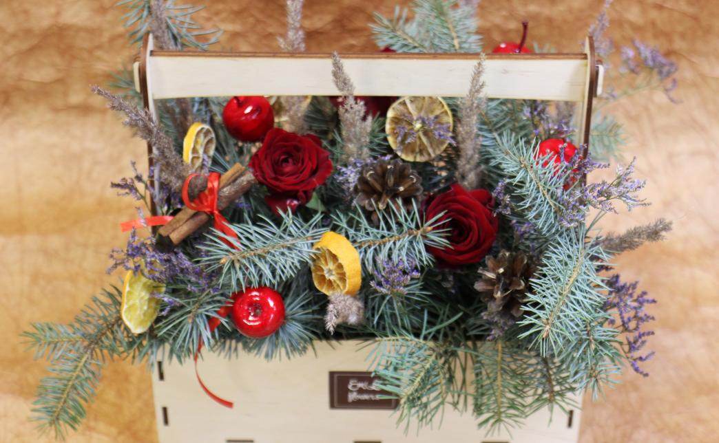 Рождественский композиции с хвоей и живыми цветами, зимние композиции: