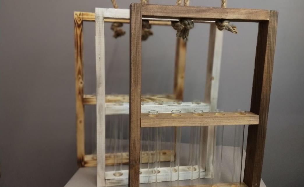 Кашпо декоративное из дерева 130*250 с канатной ручкой