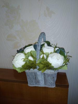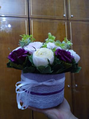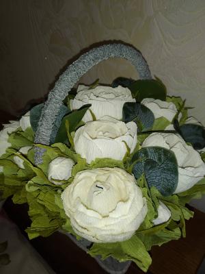 Состав: 11 крокусов ручной работы, в центре которых конфеты "Золотая Лилия" капучино