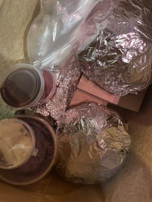 Все приехало хорошо упакованное, в фольге, теплое!