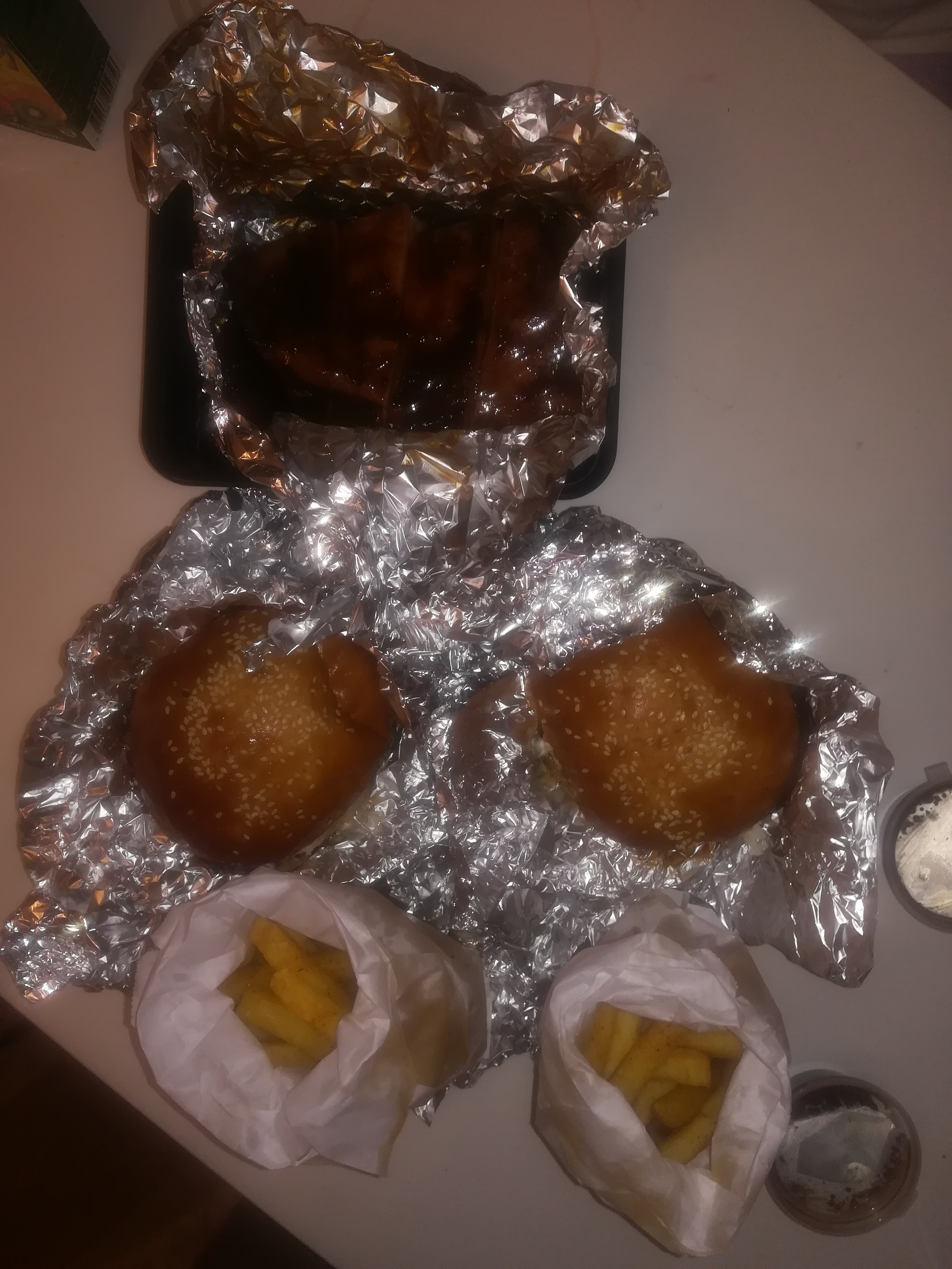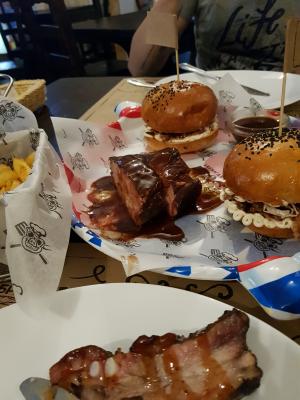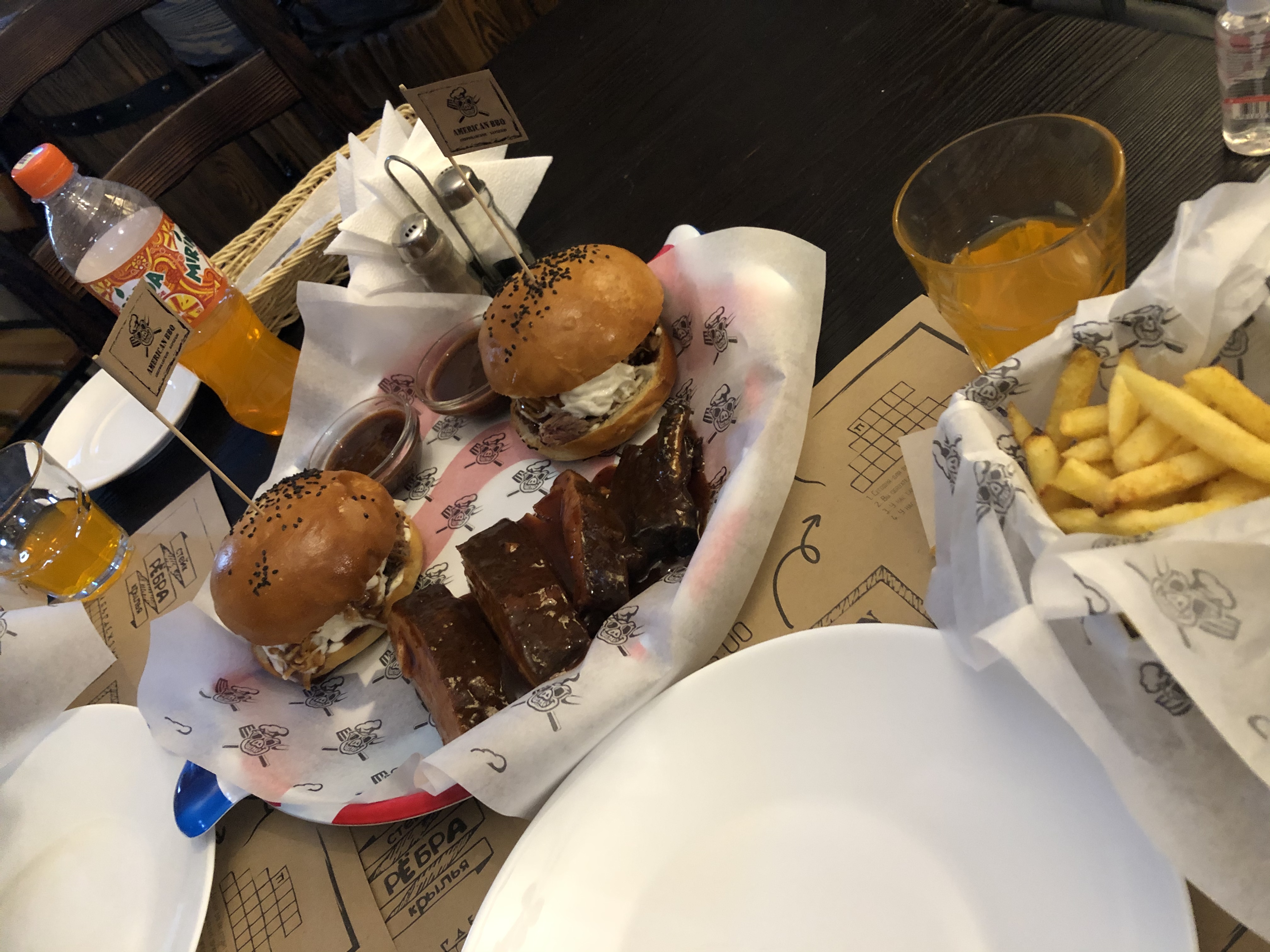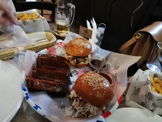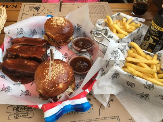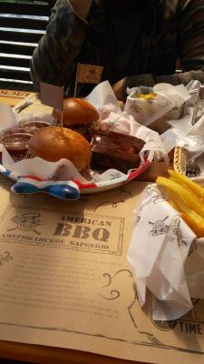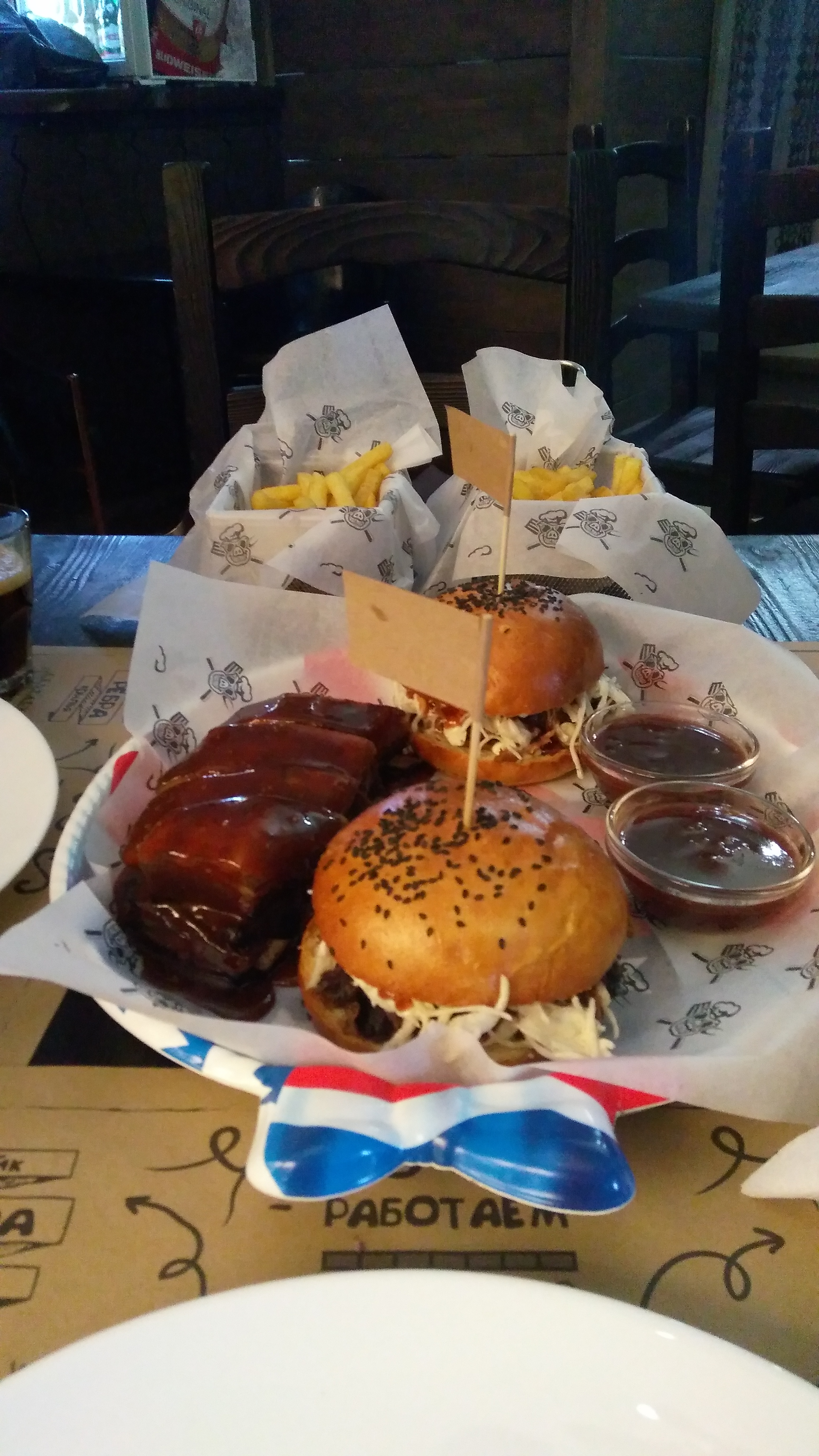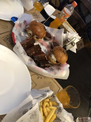 Прекрасные, сочные ребра! все сделали быстро. Брал на вынос, бургеры были сочные, картошка не размокла. Но приехав домой обнаружил недовес каждого бургера в 100 грамм, что немного испортило общее впечетленее