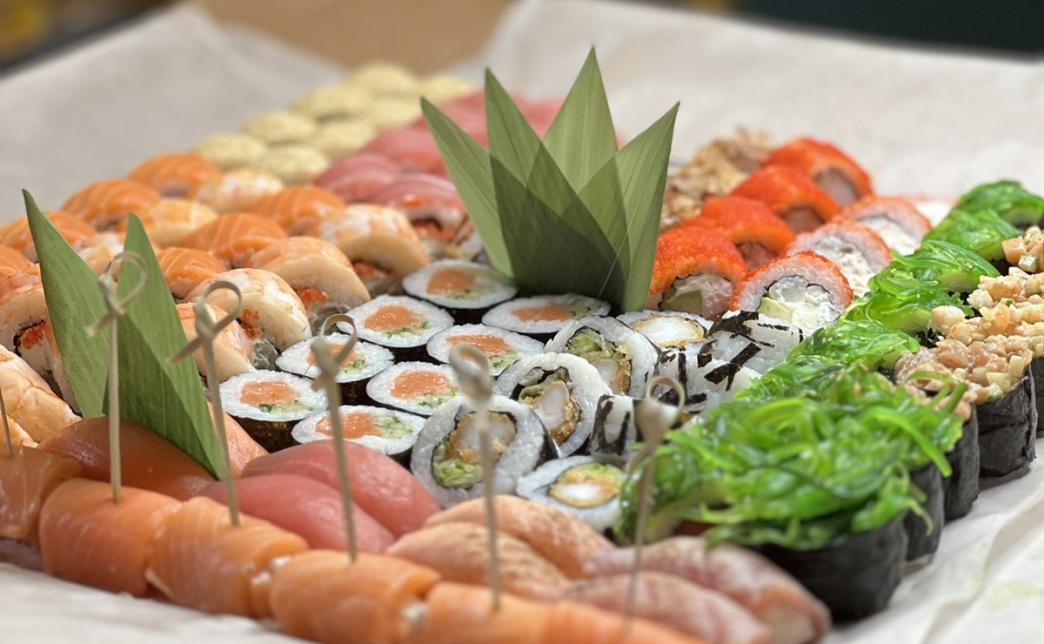 - гункан: рис, нори, огурец, кальмар, мясо мидии, крабовые палочки, гребешок, соус спайси - 245 г