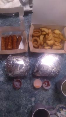 - бургер "Рваный" (рваная свинина, салат коул-слоу, сыр сулугуни, лук фри, соус фирменный)