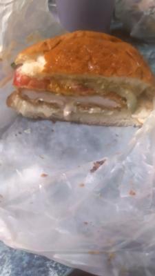 - бургер "Куриный" (куриное бедро, микс салат, томат, чеддер, свежий огурец, соус цезарь)