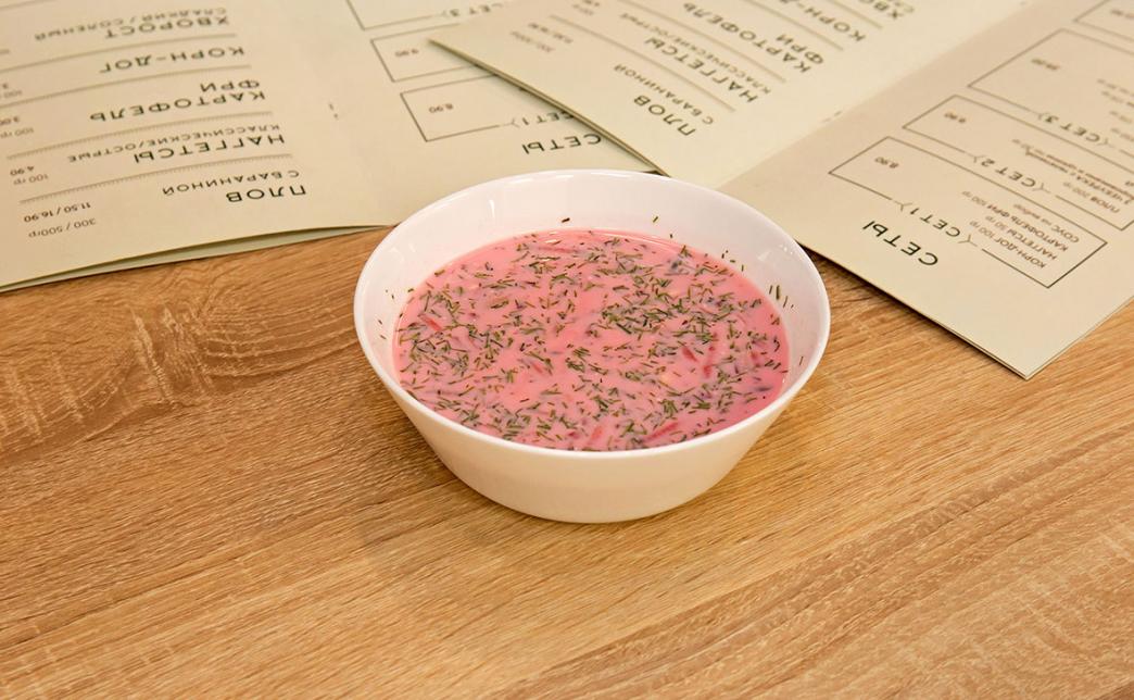 Состав: кефир, маринованная свекла, свежий огурец, яйцо куриное, зелень
