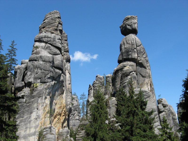Теплицко-Адршпашские скалы - два примечательных, известных далеко за пределами Чехии скальных лабиринта, образованных причудливыми песчаниковыми формациями из осадков мелового моря (кретон). Весь массив диких скал, по своим очертаниям напоминающий эллипс, поднимается на высоту более 600 м над уровнем моря и покрыт густым нетронутым лесом.