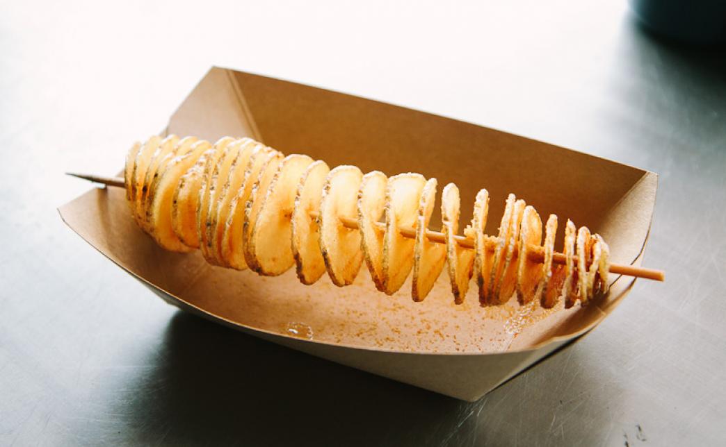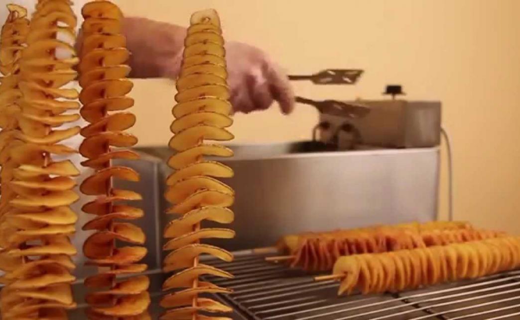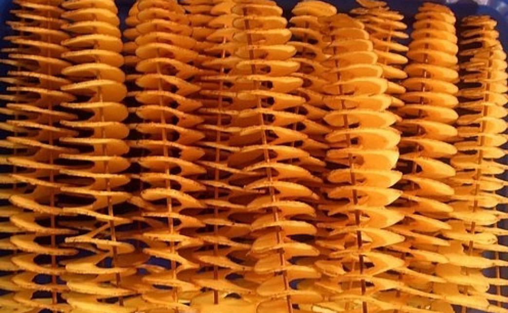 Чипсы спиральные картофельные  – это картофель в кожуре на палочке (может быть с сосиской), нарезанный спиралью и обжаренный во фритюре.